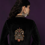 Ashi Black Embroidered Velvet Co-ord Set