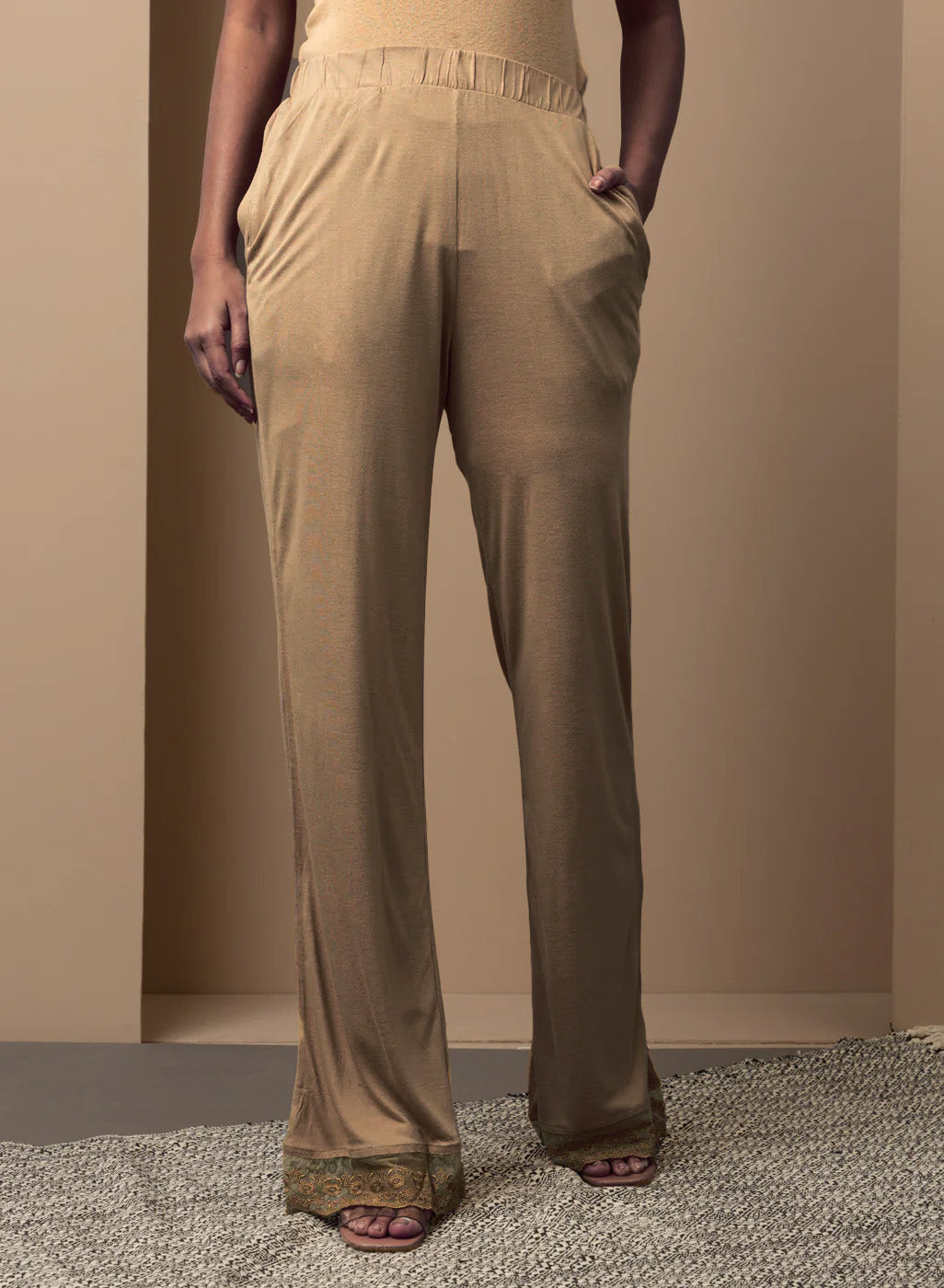 Gold Straight Fit Palazzo with Decorative Lace Work