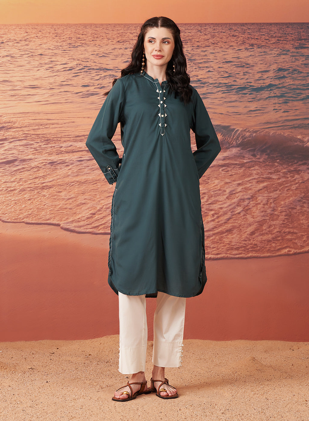 Sky Blue Monochrome Embroidery Cotton Gauze Kurti