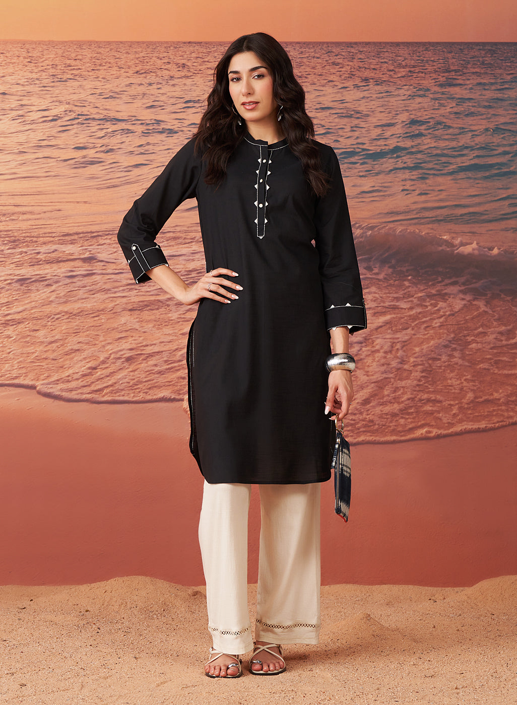 Pink Monochrome Embroidery Cotton Gauze Kurti