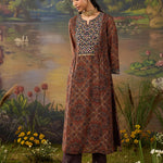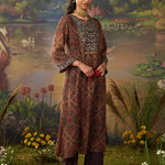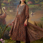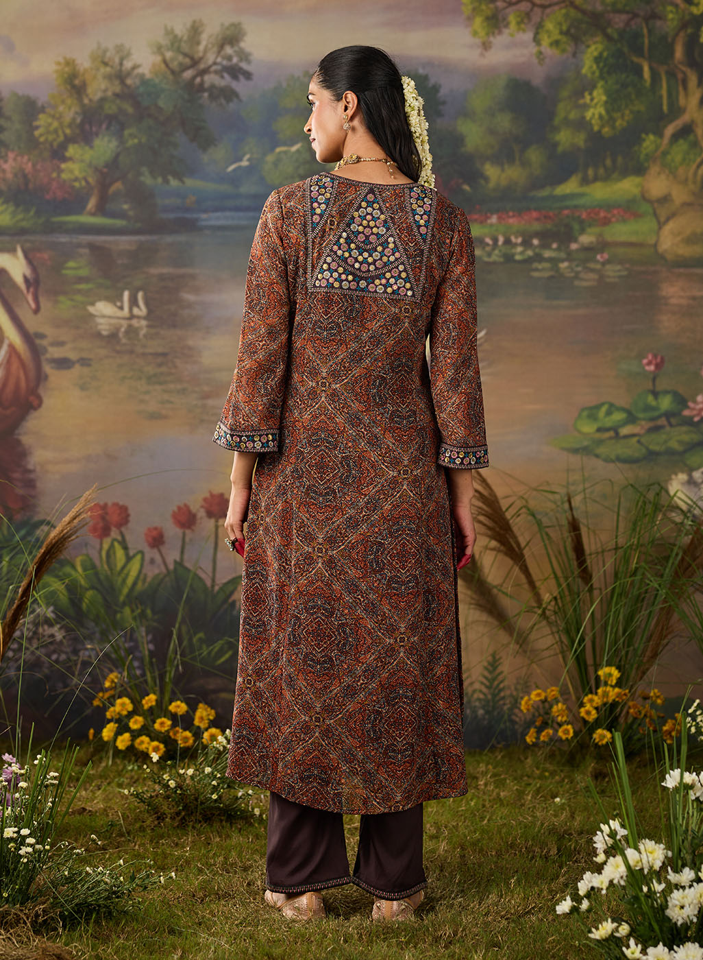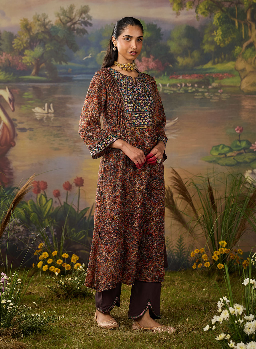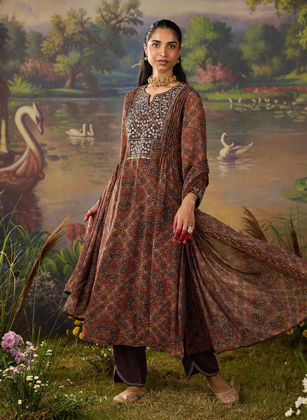 Falak Brown Tribal Printed Georgette Straight Long Suit Set with Dupatta