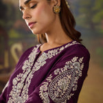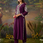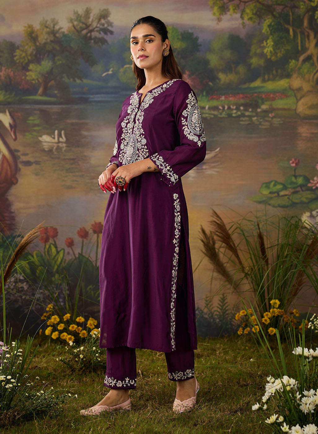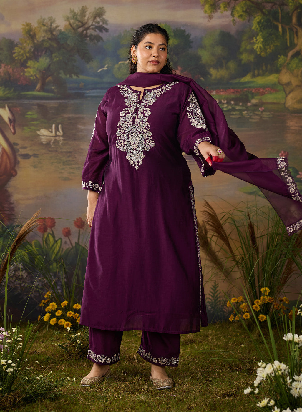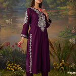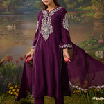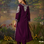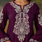 Husna Purple Silk Embroidered Straight Suit Set with Dupatta