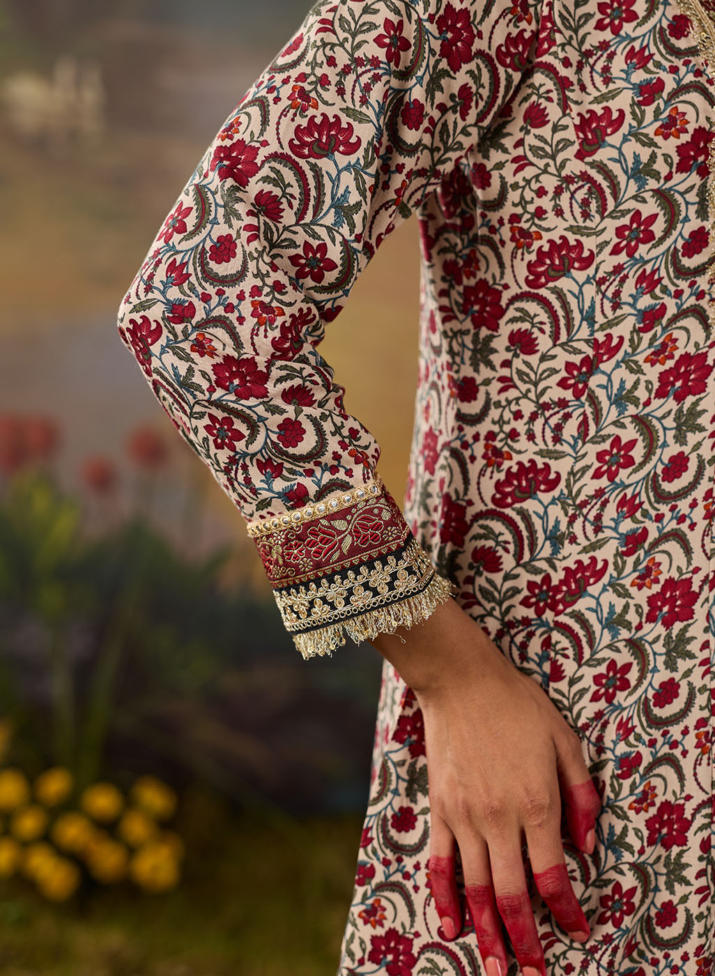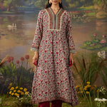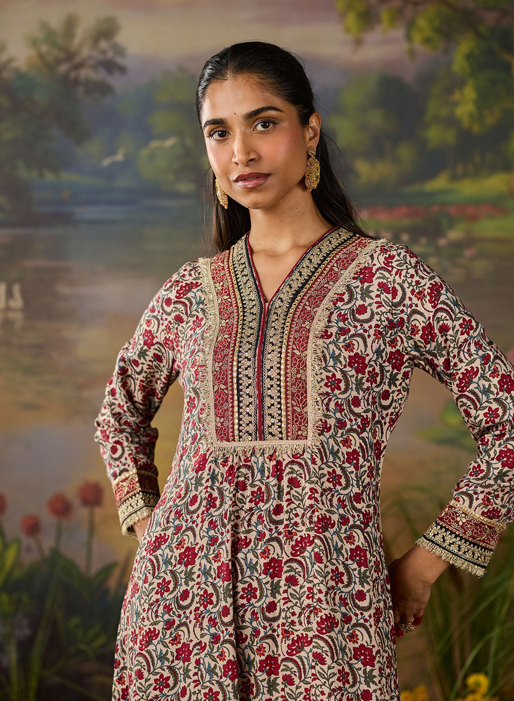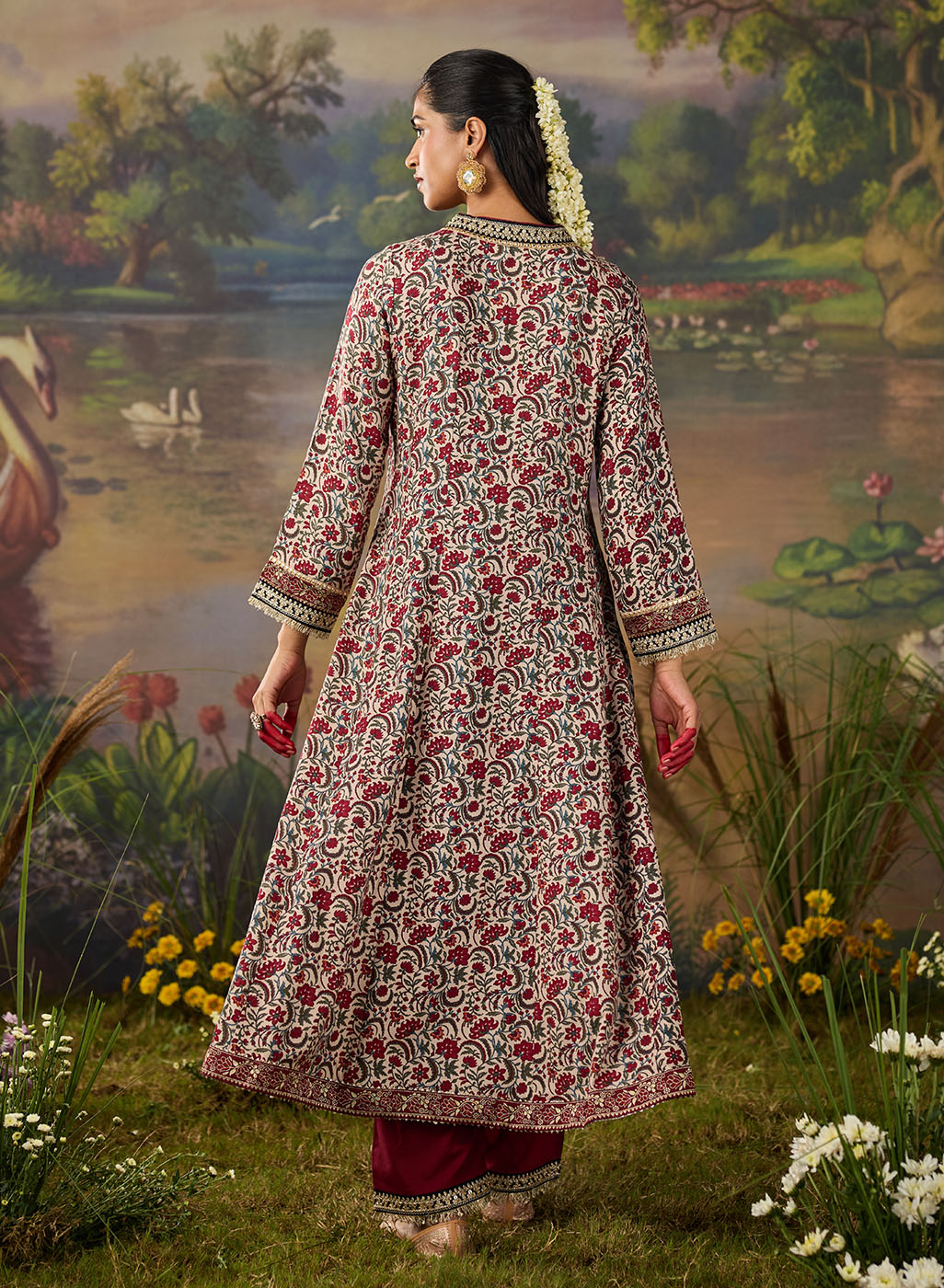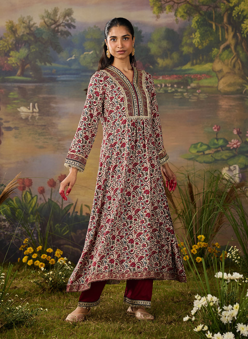 Kainat Maroon Traditional Floral Printed Viscose A-line Suit Set with Dupatta