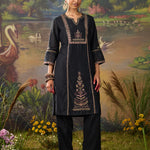 Nisha Classic Black Zari Emroidered Chanderi Straight Suit Set with Dupatta