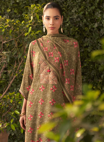 •Completing the ensemble, the chiffon dupatta showcases a mesmerizing all-over print, enhancing the outfit’s layered elegance.