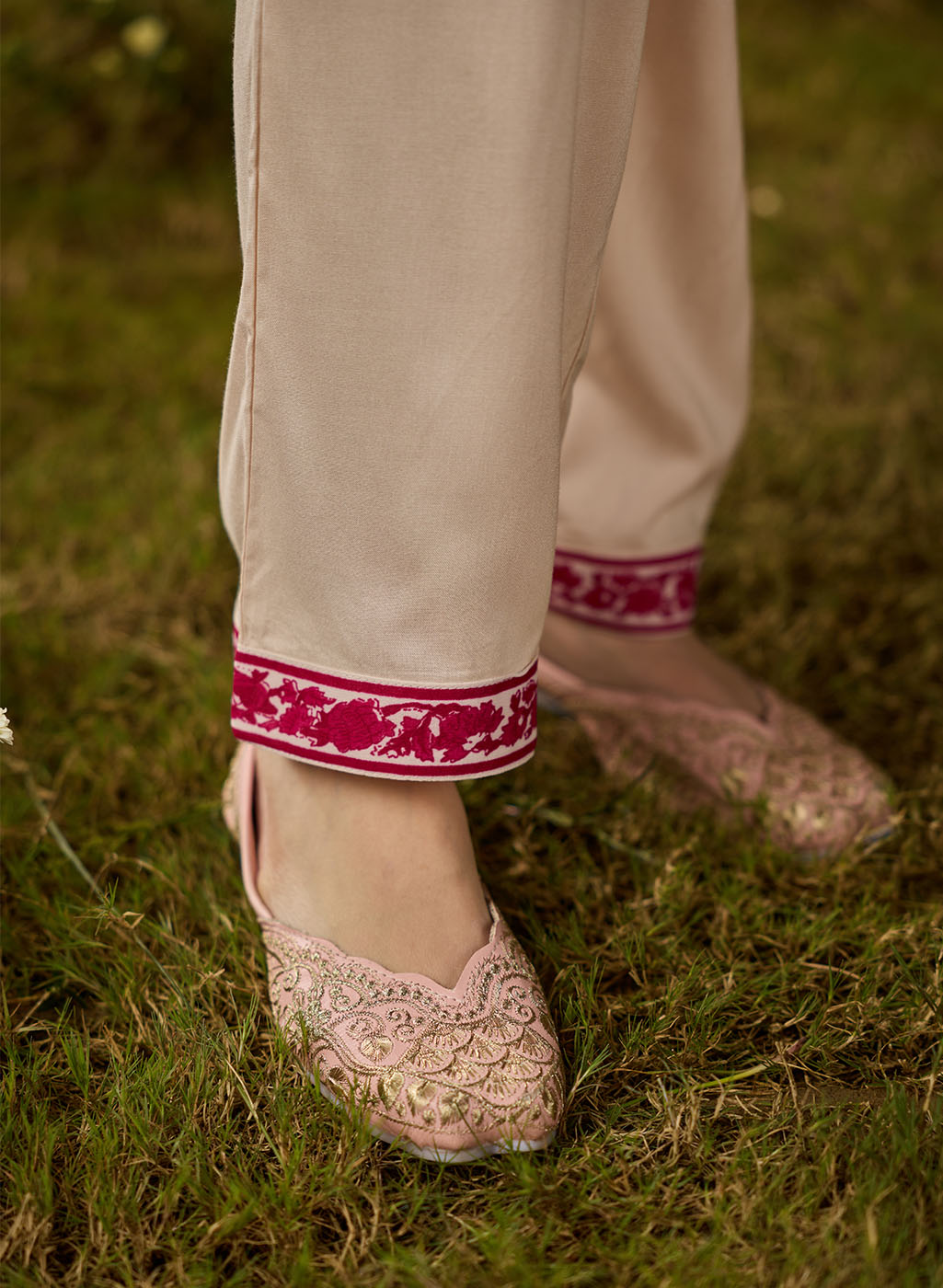 • Straight kurta with embroidered sleeve cuffs and side slits