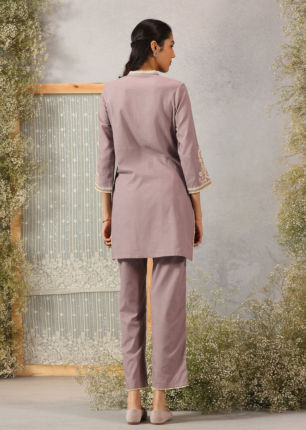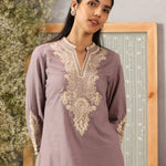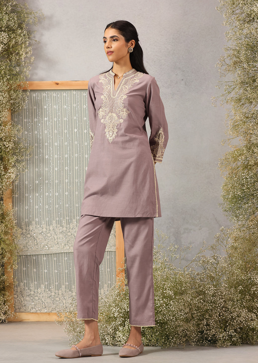 Soothing shades and minimal intricate embroidery is what today’s women like, and that’s why this lavender-coloured A-line kurta is the perfect choice to wear this season. This comes with embroidered 3/4th sleeves and when paired with matching palazzos and jewellery, it will make you look simply gorgeous.