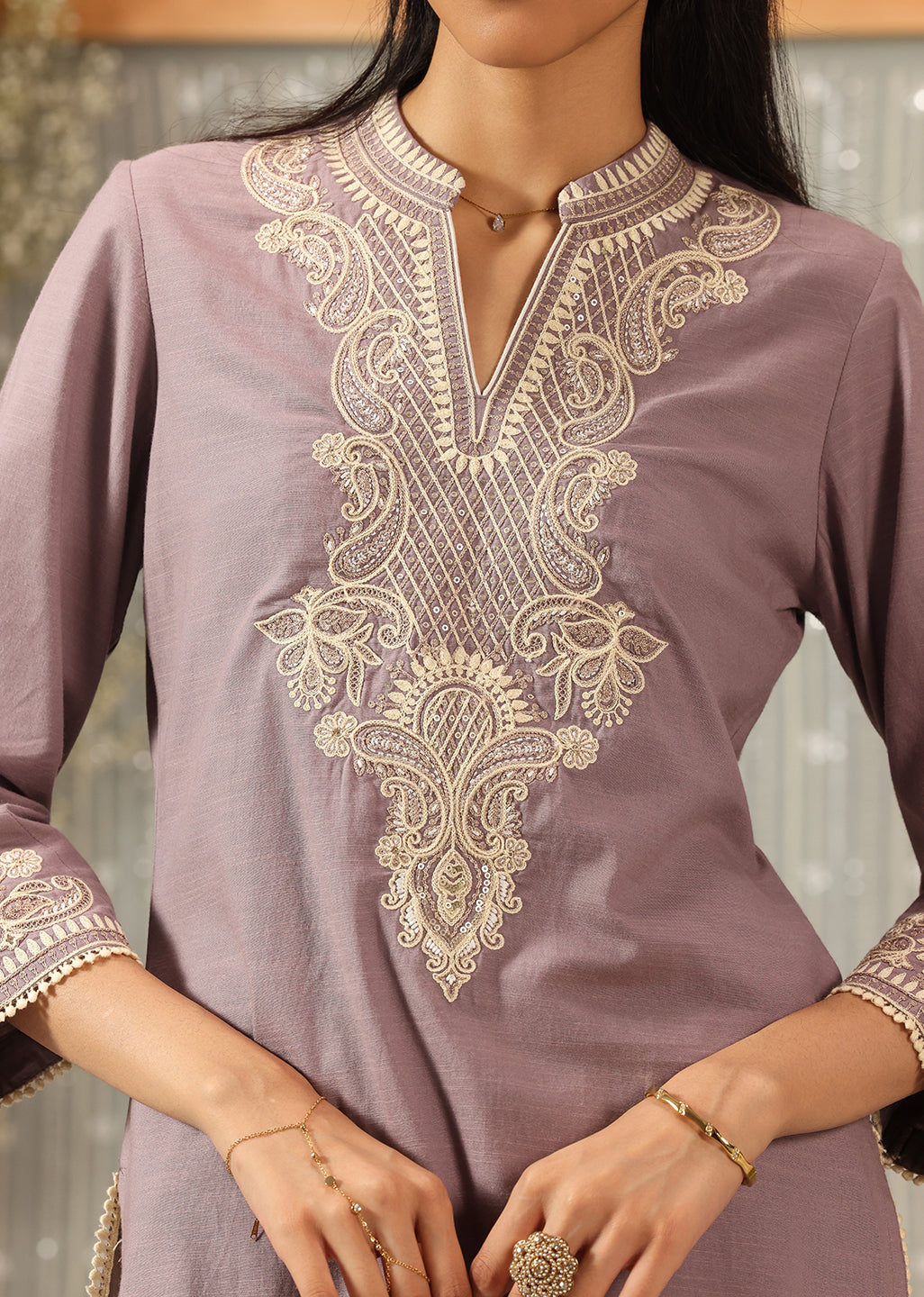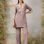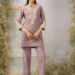 Lavender A-line Embroidered Georgette Kurta Set for Women