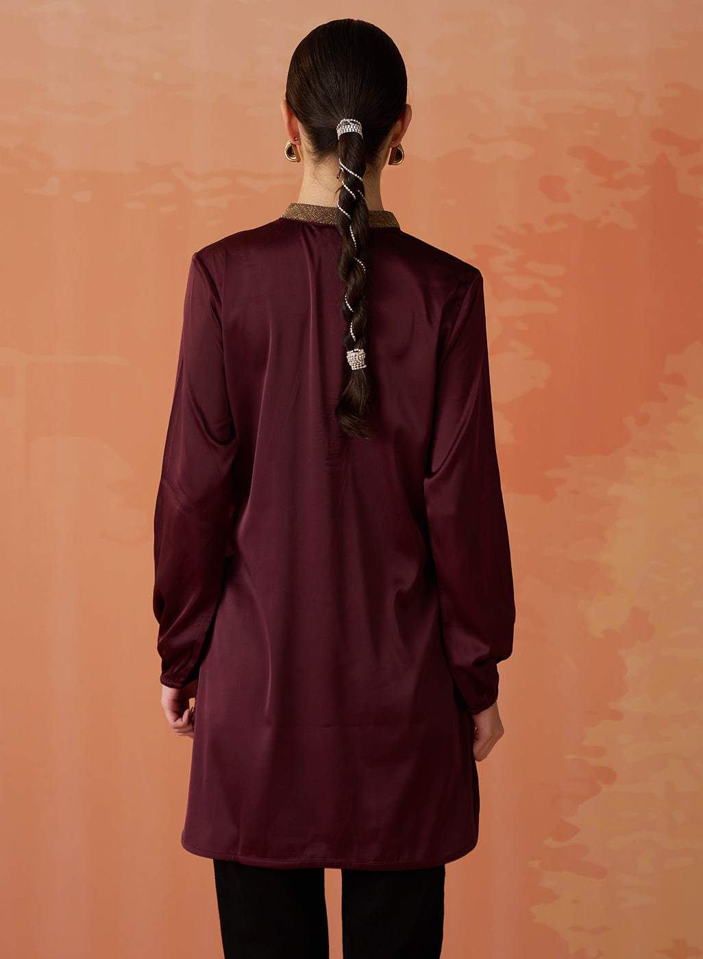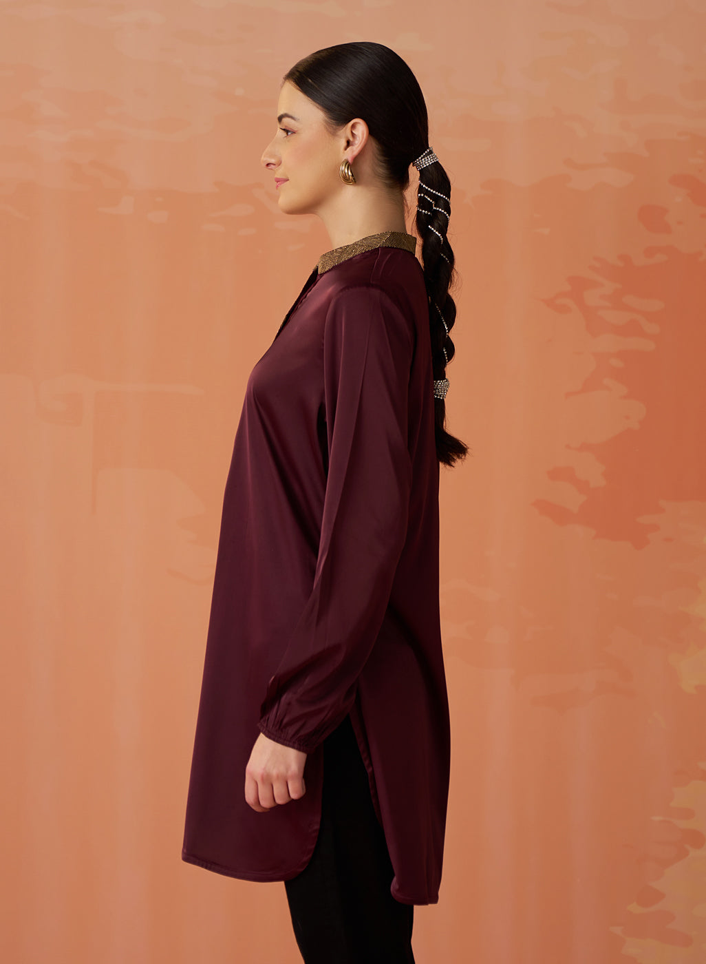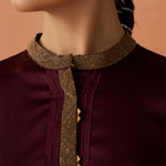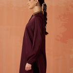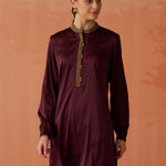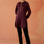 Trisha Maroon Embroidered Satin Kurti for Women