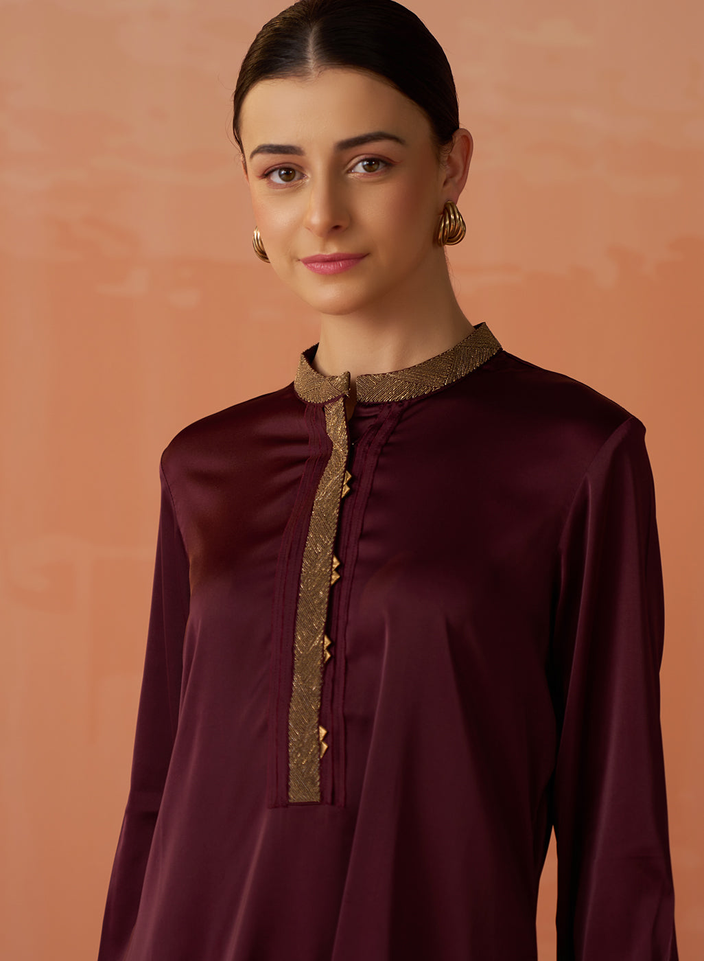 Our Trisha Maroon Embroidered Satin Kurta for Women is a stunning piece crafted for evening gatherings. Made from lightweight, flowy satin fabric with a soft sheen, this Kurta effortlessly combines elegance with comfort, making it perfect for special occasions.