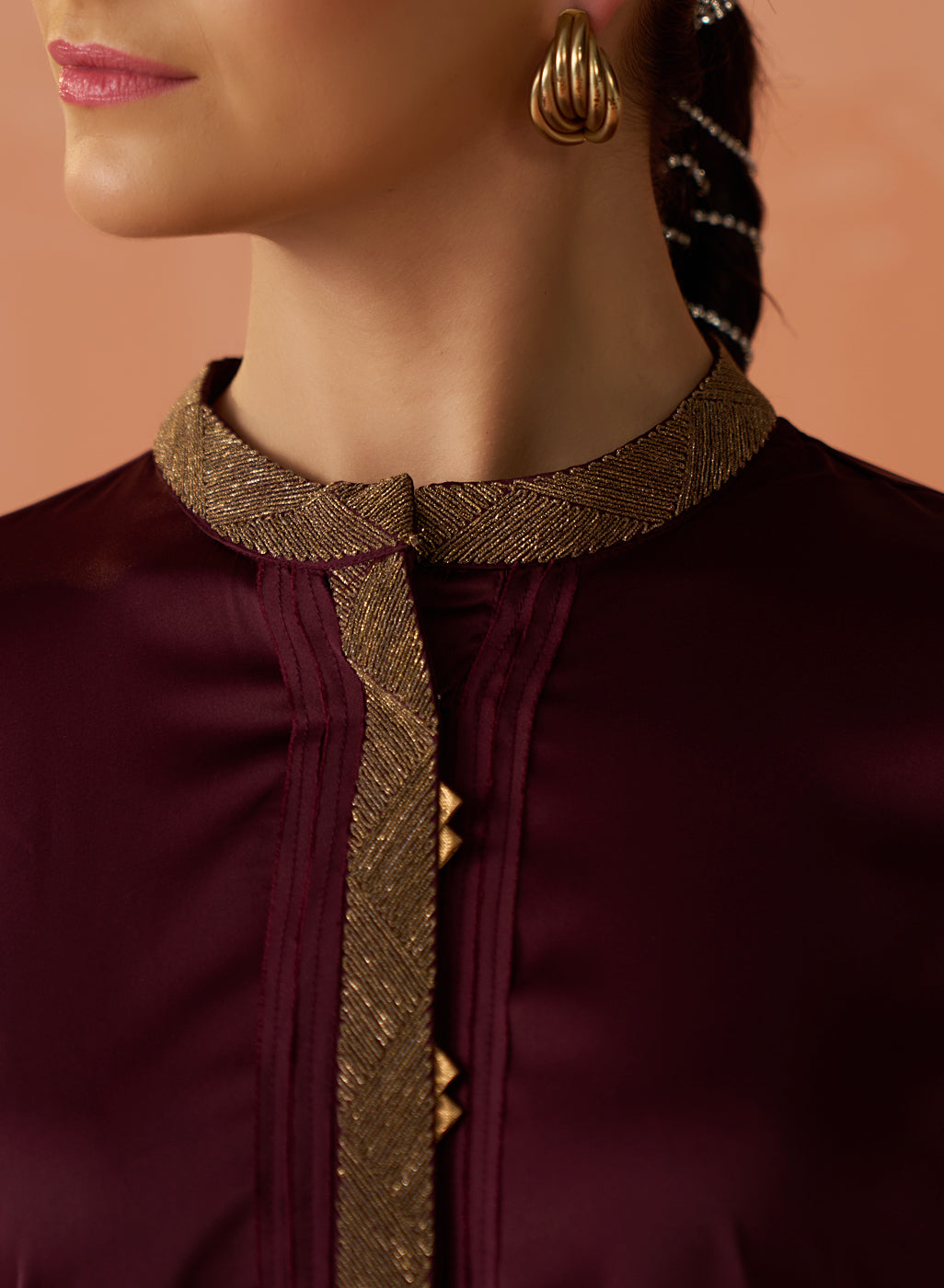 •The rich maroon hue adds sophistication, while the subtle shimmer elevates its luxurious appeal.