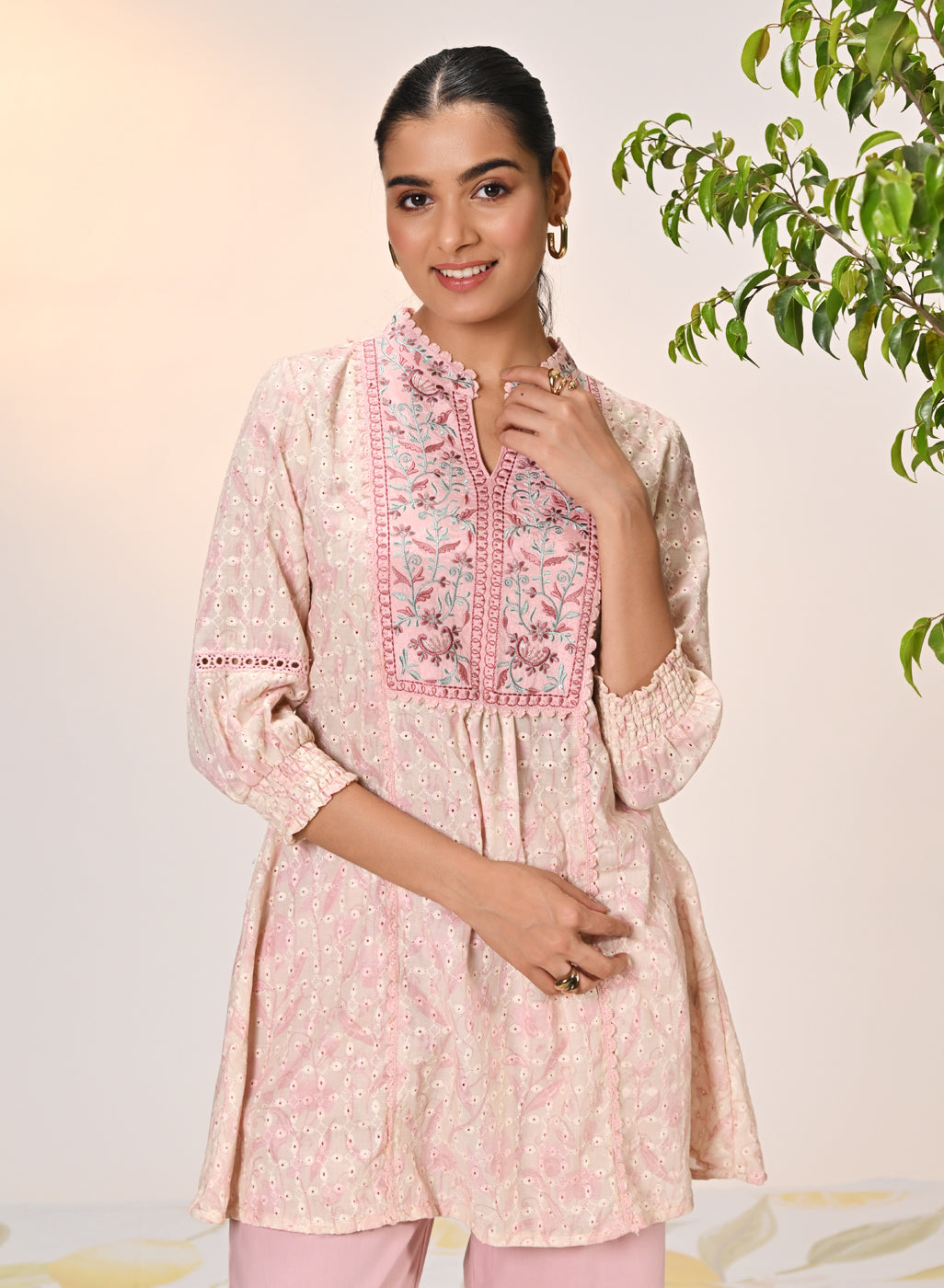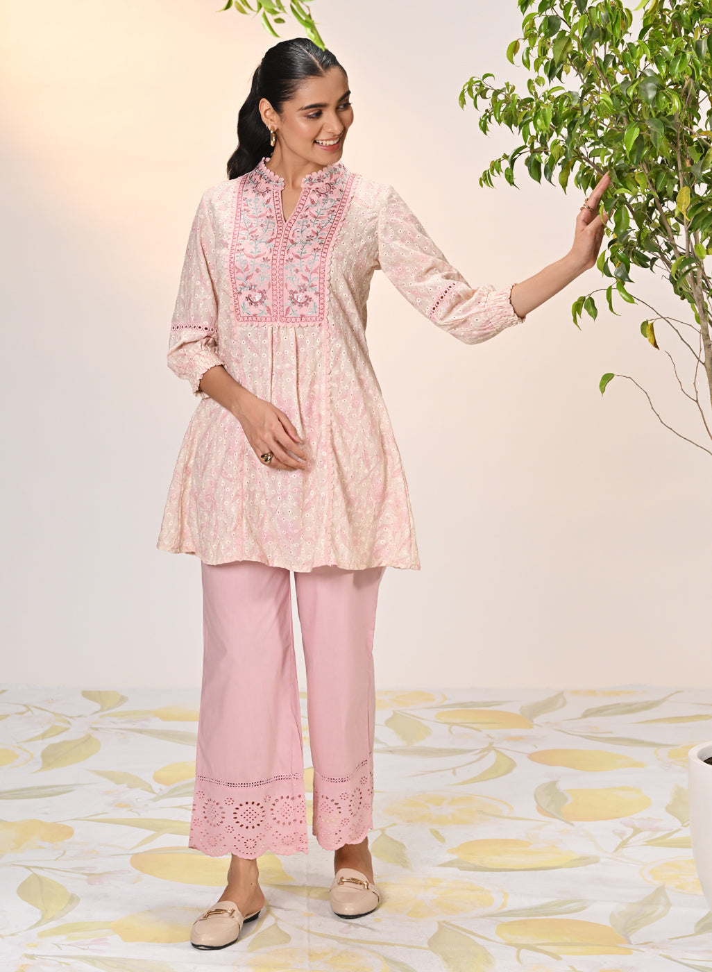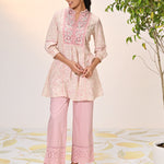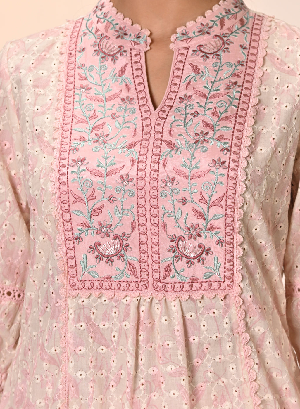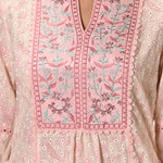 Yumna Pink Embroidered Schiffli Kurti for Women