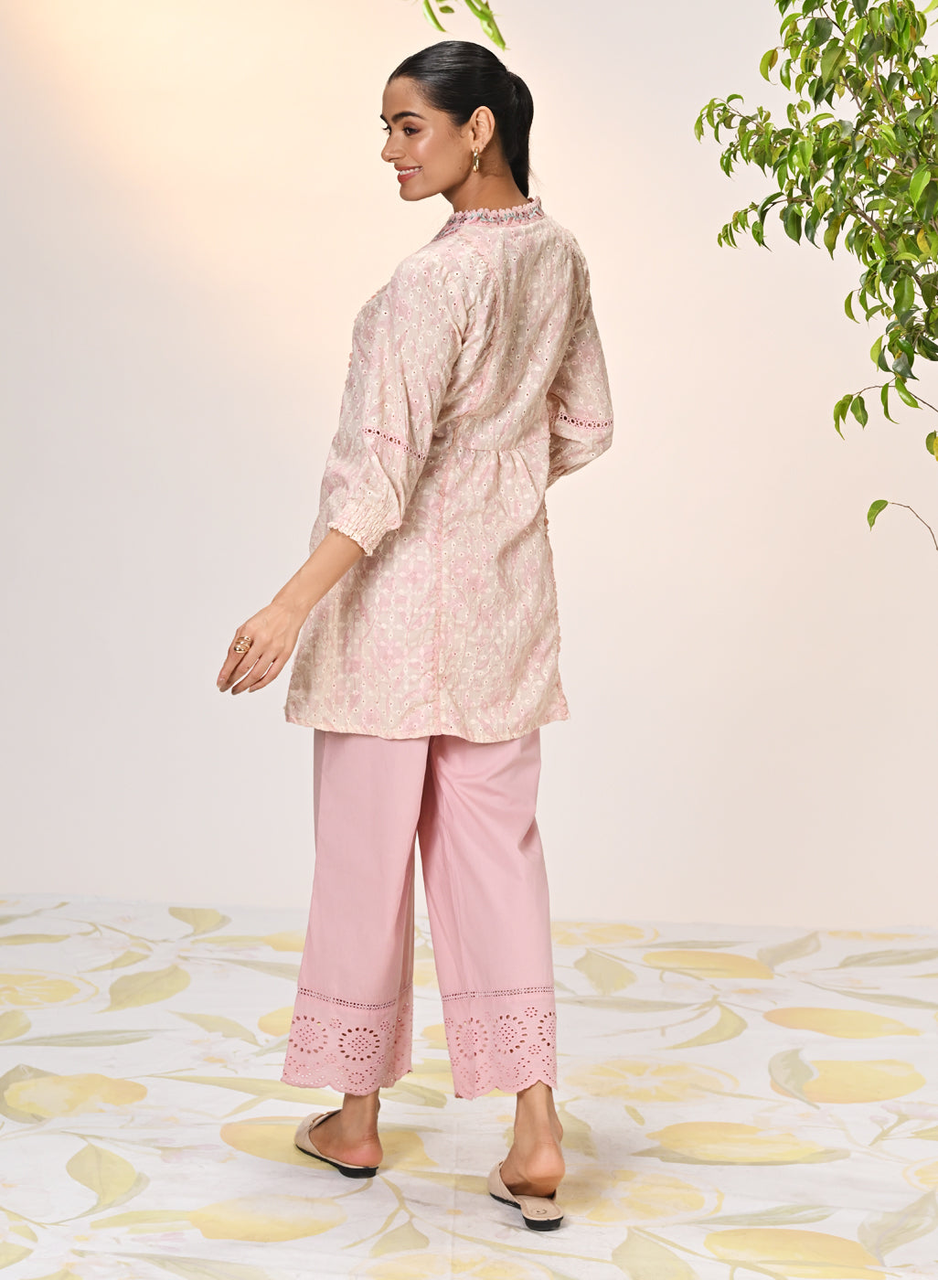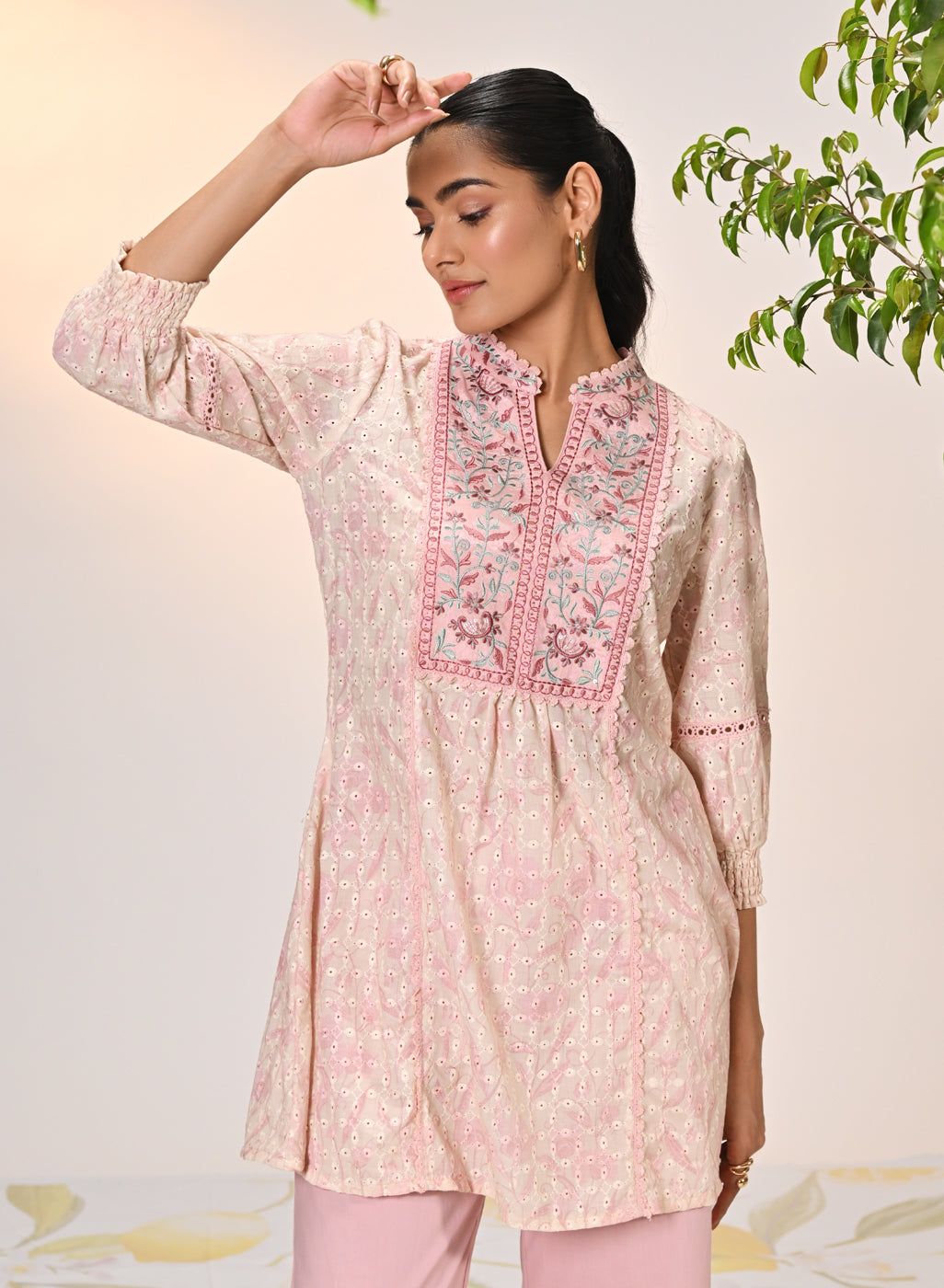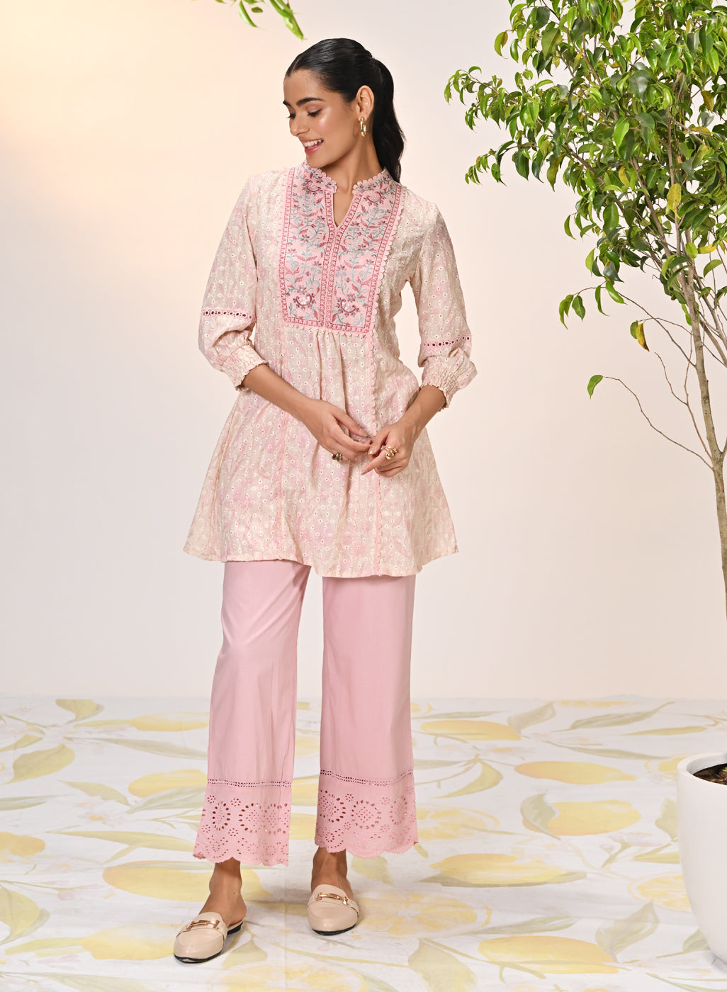 Yumna Pink Embroidered Schiffli Kurti for Women