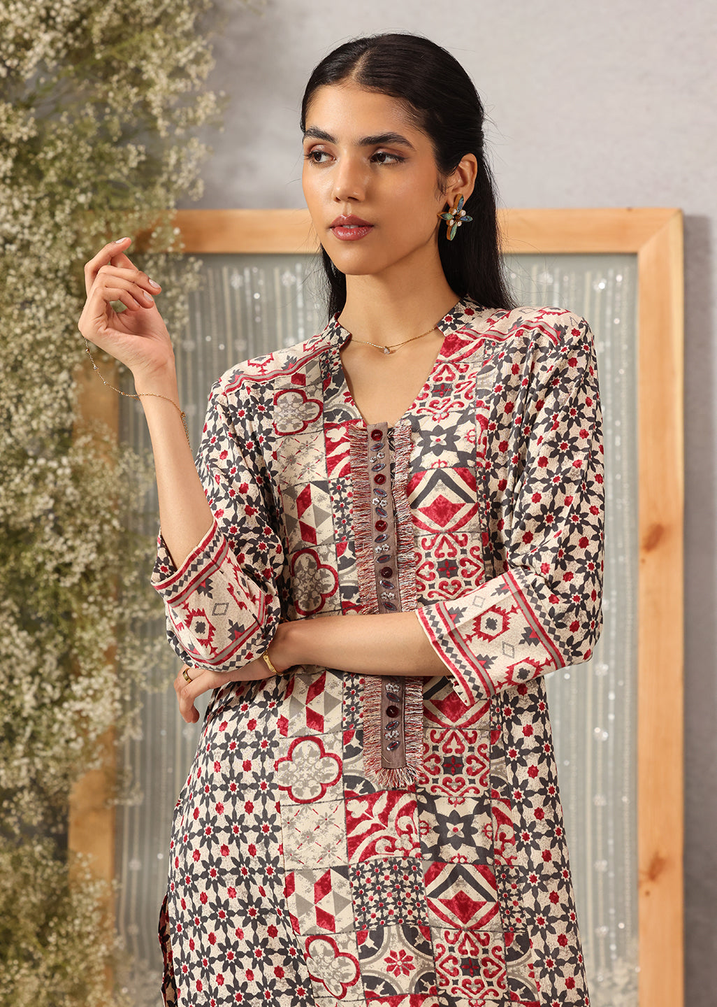 Red Alora Collection Kurta With Embroidery And Lace Detailing