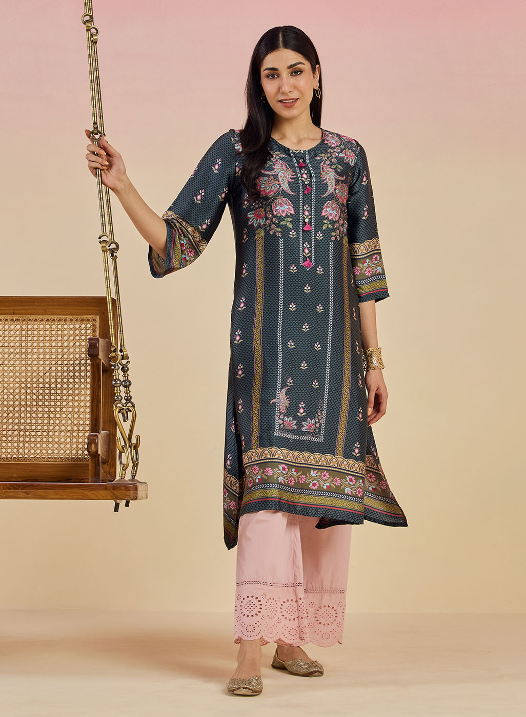 Charmi Grey Printed Satin Kurta for Women