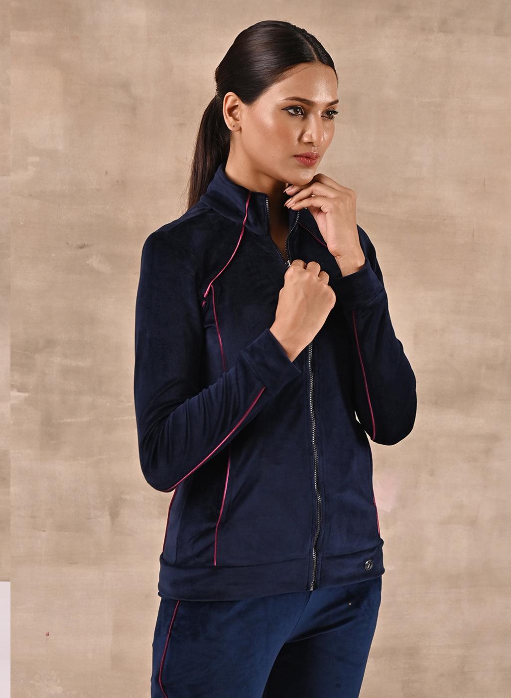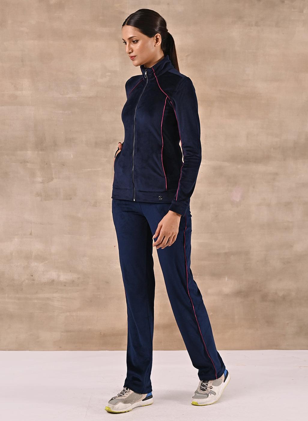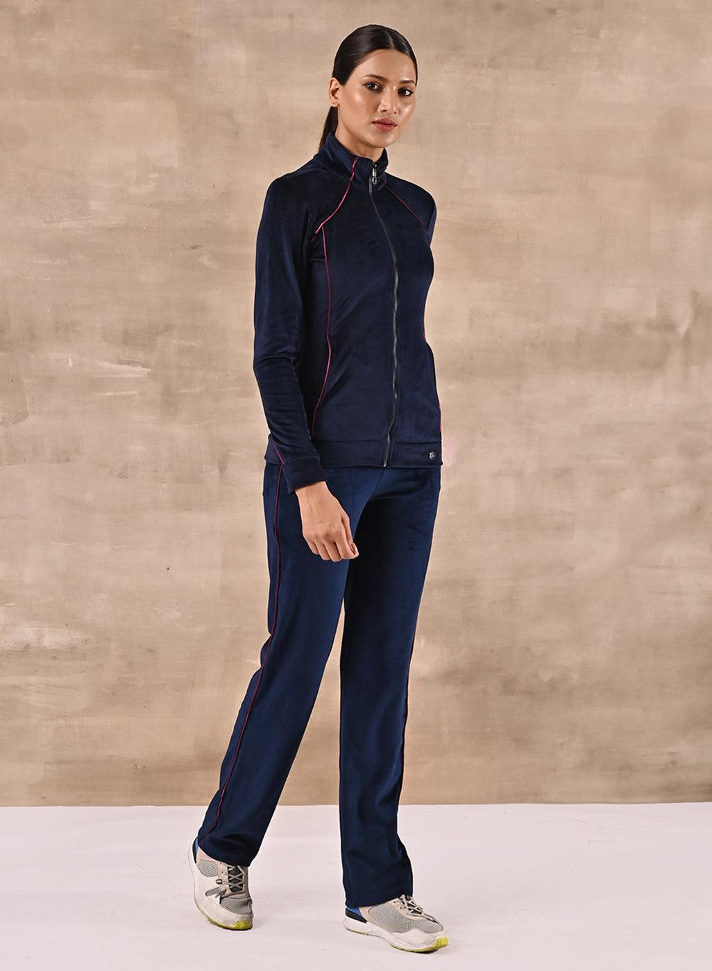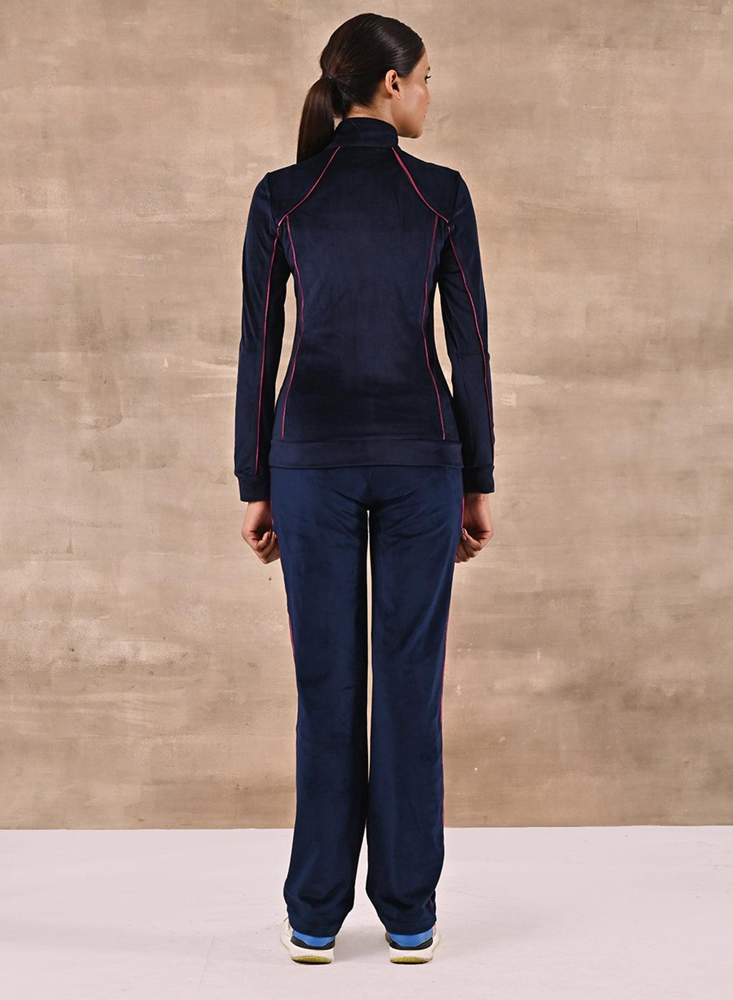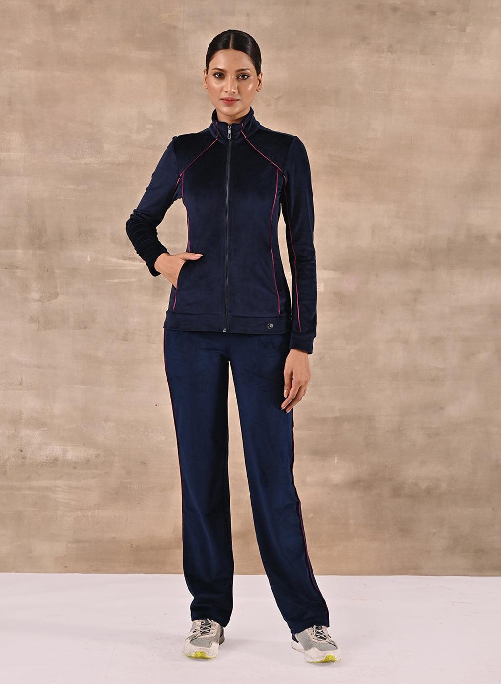 Navy Blue Paneled High Neck Track Suit - Lakshita