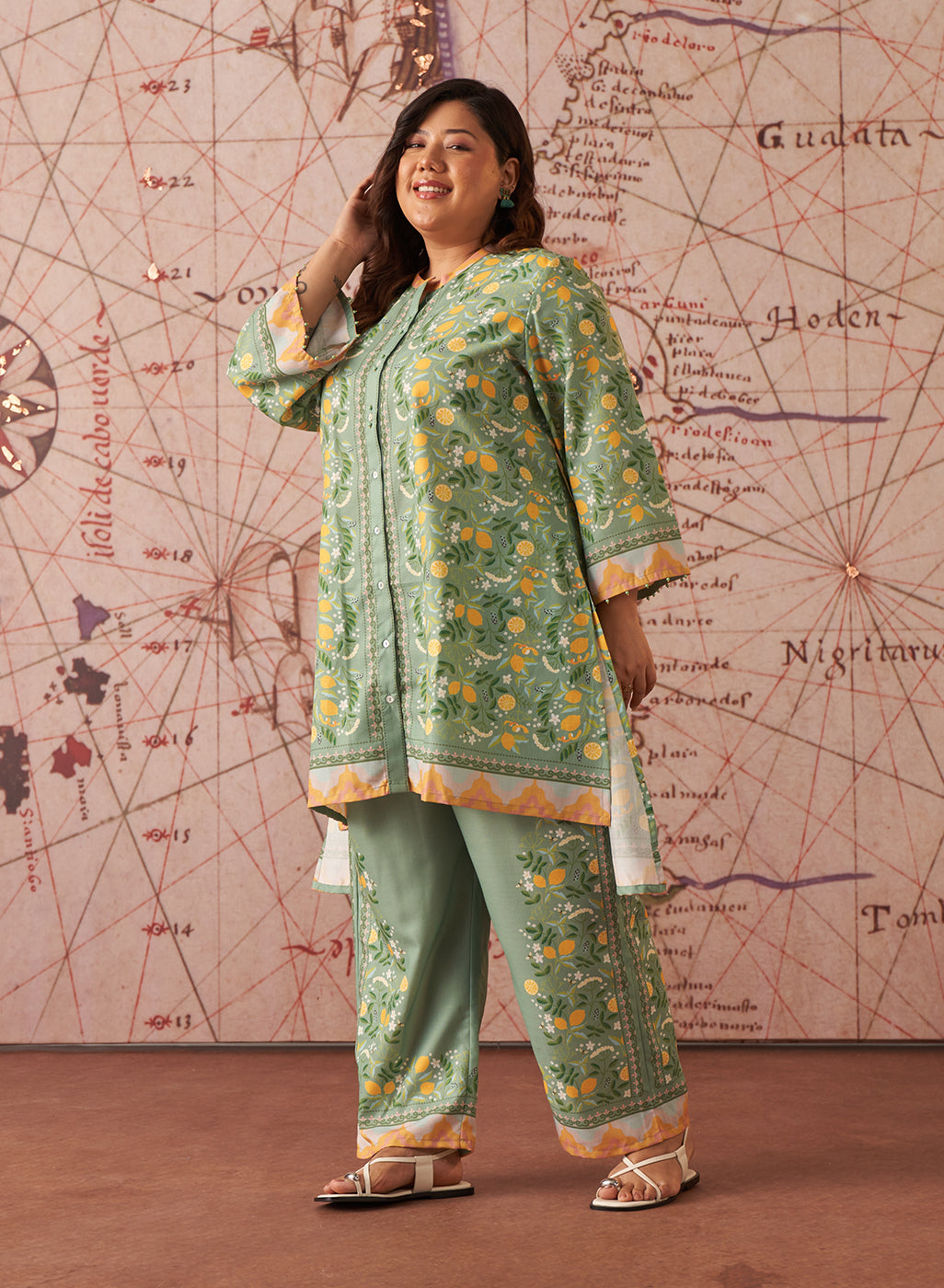 Saina Chenoise Green Printed Remi Linen Co-ord Set for Women