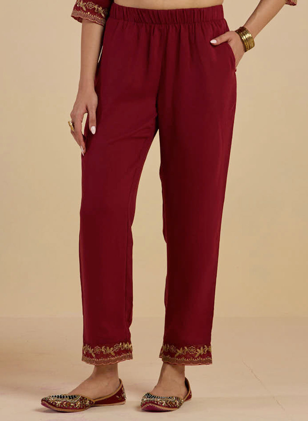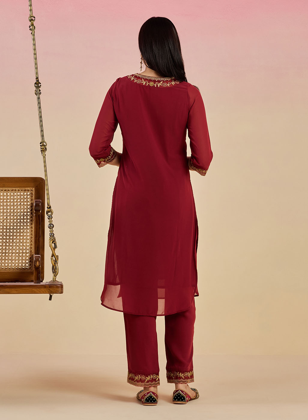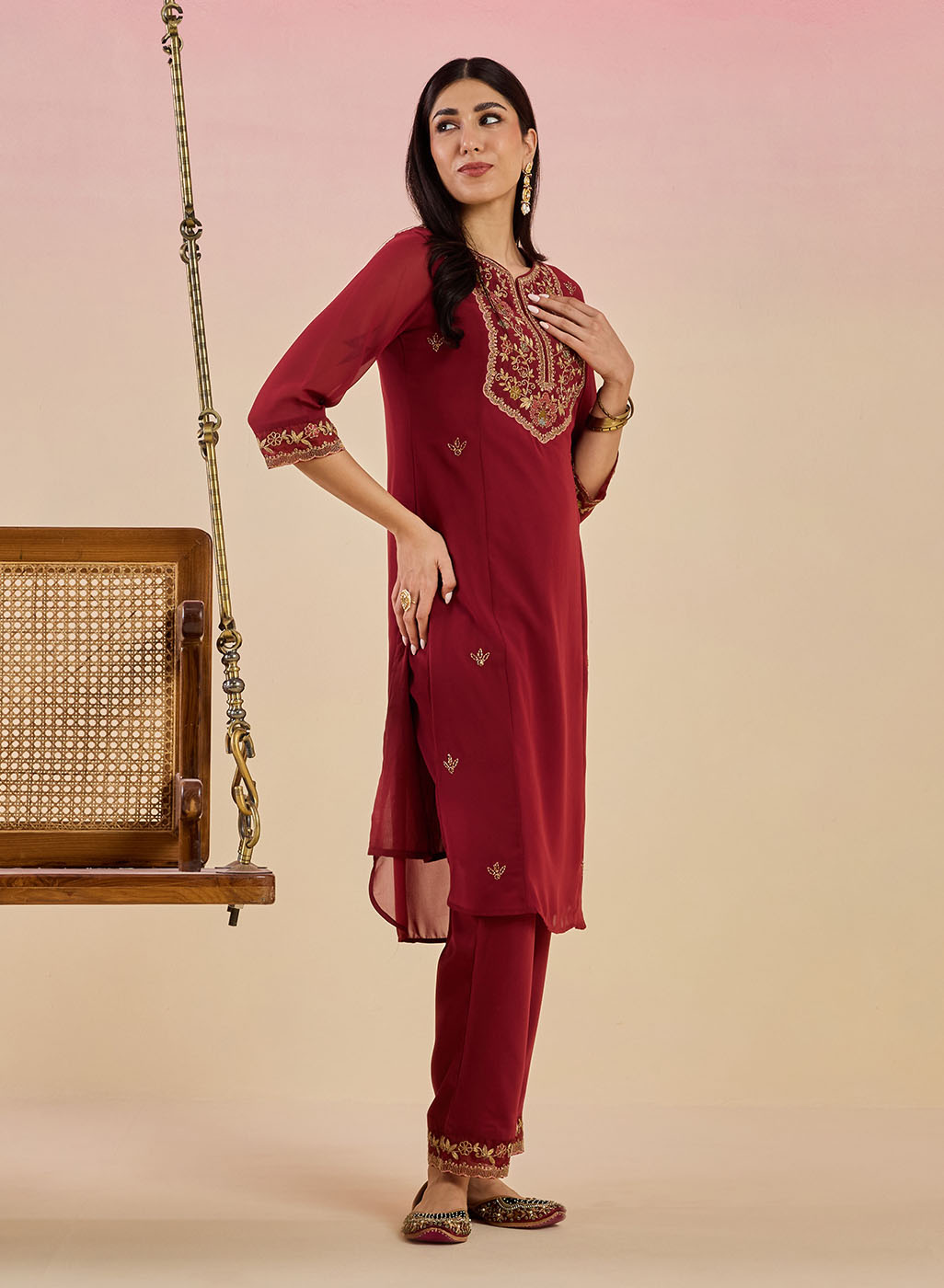 A fine melange of traditional elegance and contemporary styles, this gorgeous Fuchsia kurta set will make heads turn everywhere you go. This intricate detailing on the front, sleeves and bottom is what makes this embellished kurta set even more impressive. Boost the beauty of the kurta set by pairing it with matching ethnic footwear and alluring accessories.