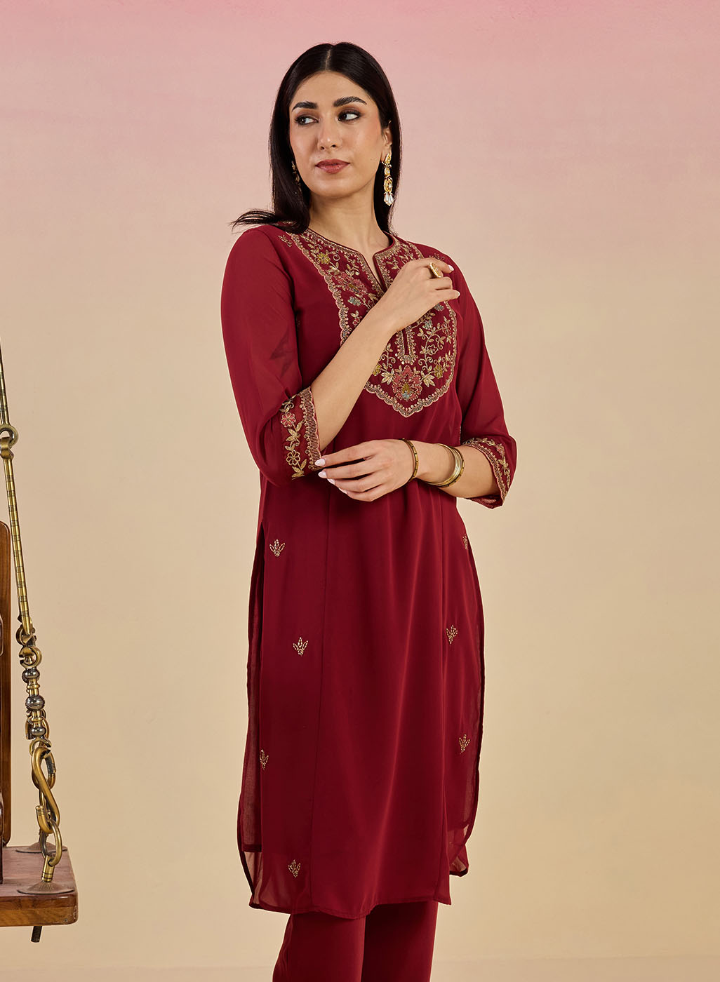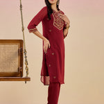 Fuchsia Kurta Set With Embroidery