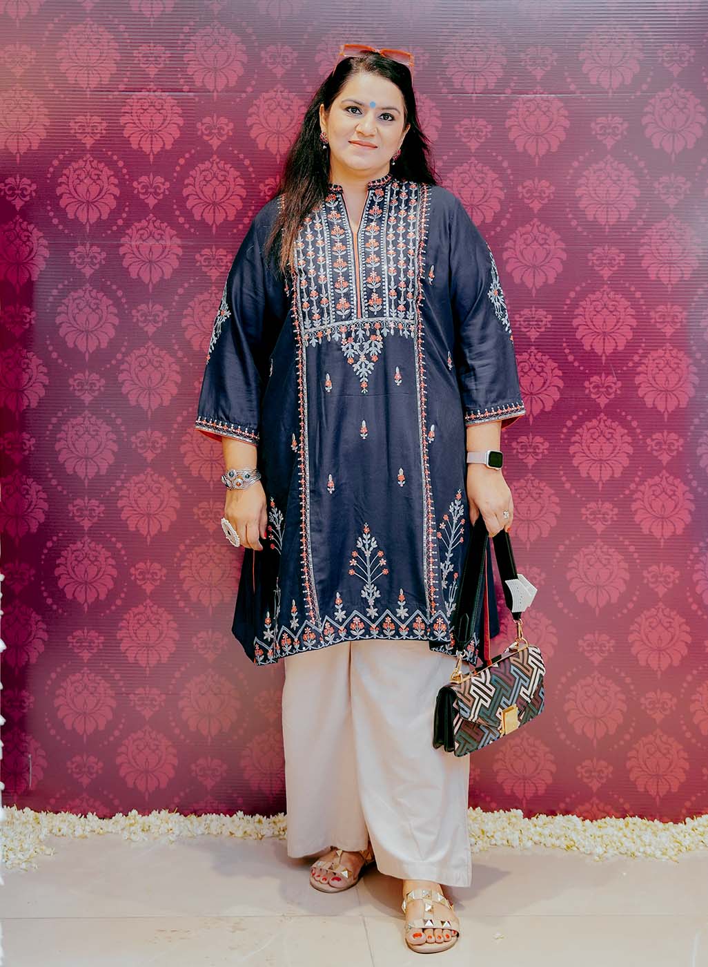 Purple Velvet Kurta with Fine Mirror Beads Work