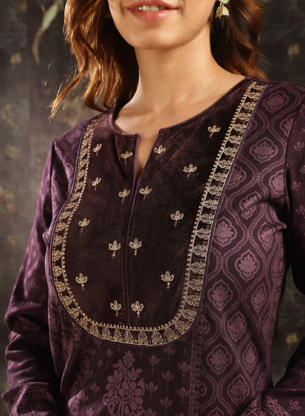 Purple Velvet Kurta with Fine Mirror Beads Work