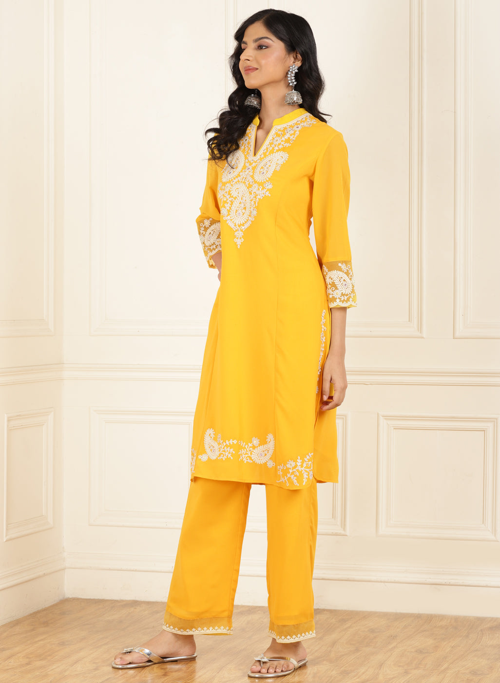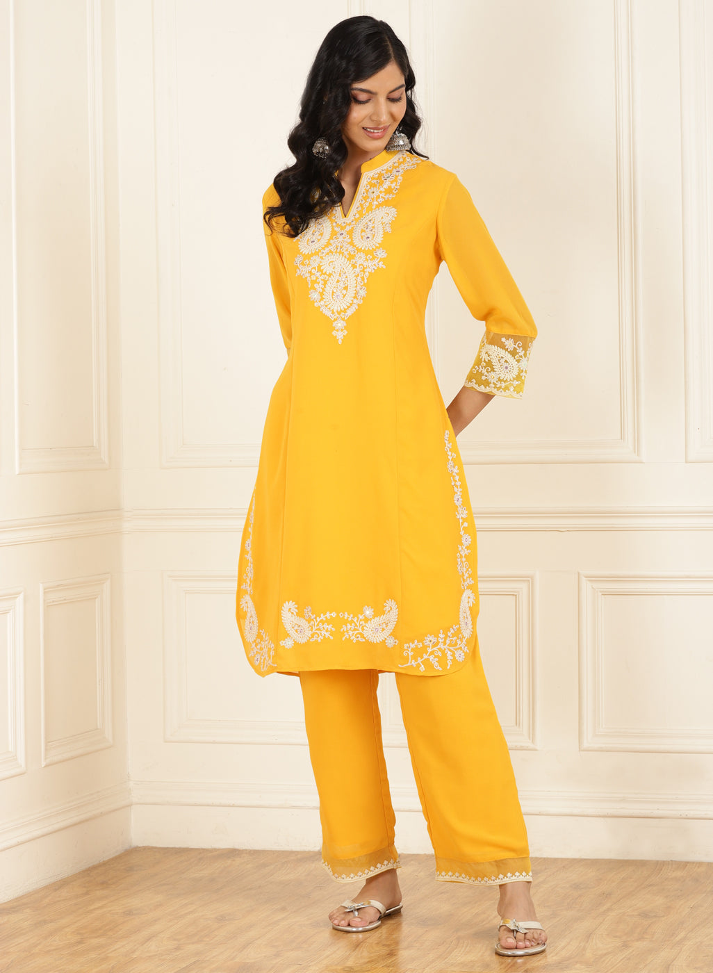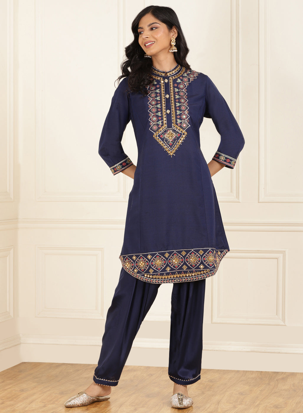 Navy Blue Embroidered Velvet Kurta Set for Women