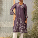 Aks Purple Embroidered Modal Chanderi Tunic for Women