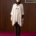 Chic, minimal, and oh-so-versatile! This ivory cape brings understated luxury to your wardrobe. The soft wool and fluid drape make it a timeless layer for cooler days.