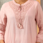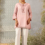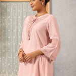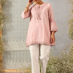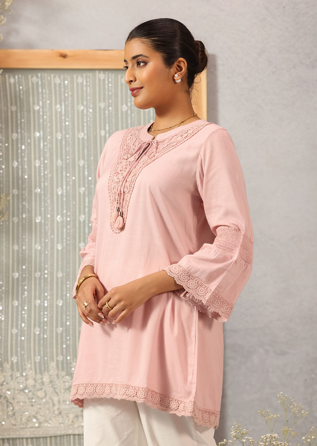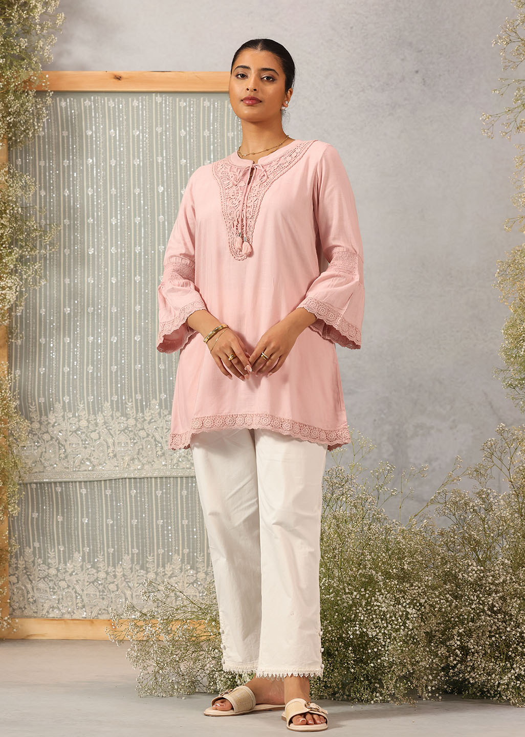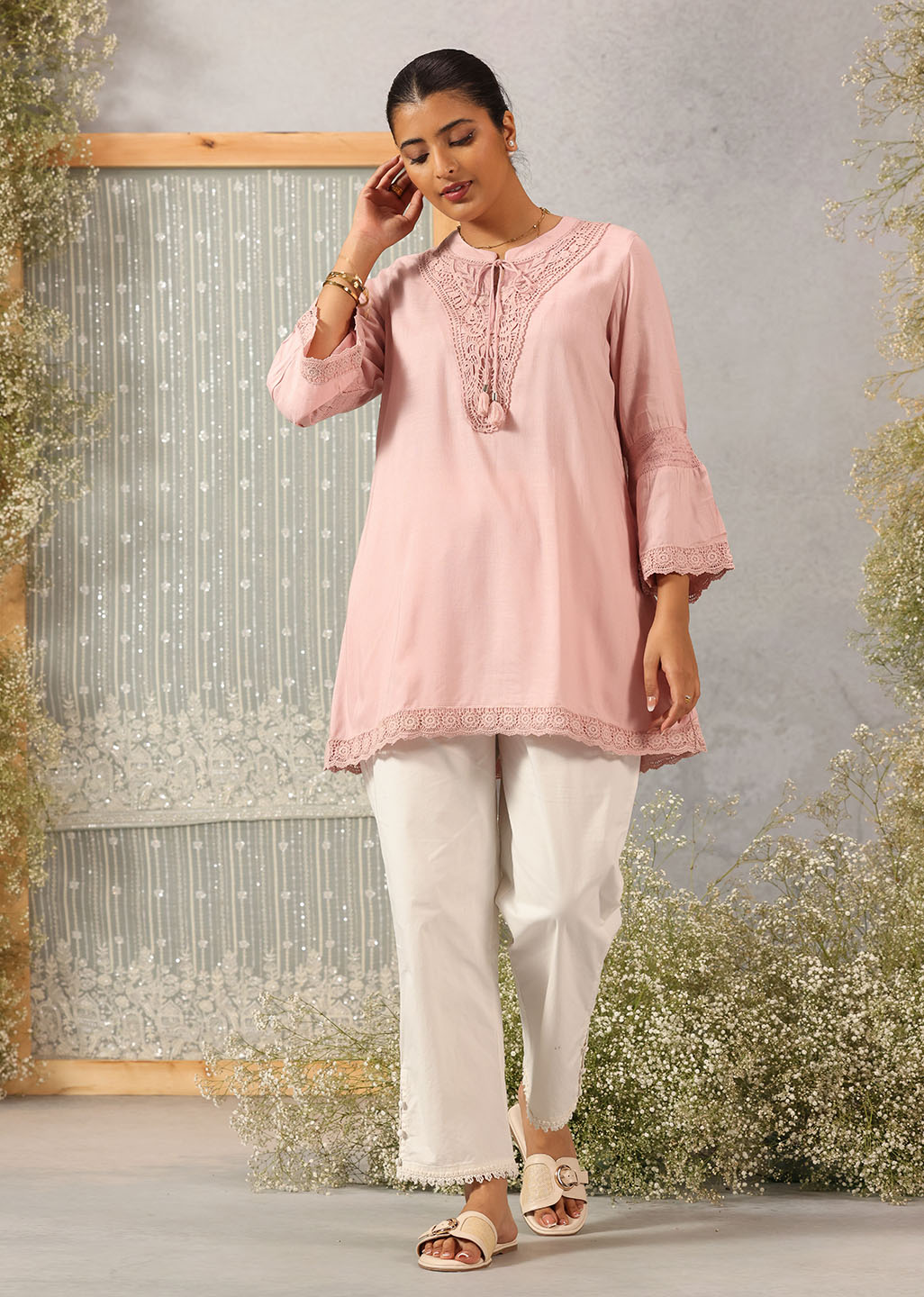 Pink Solid Tunic with Keyhole Neck and Bell Sleeves