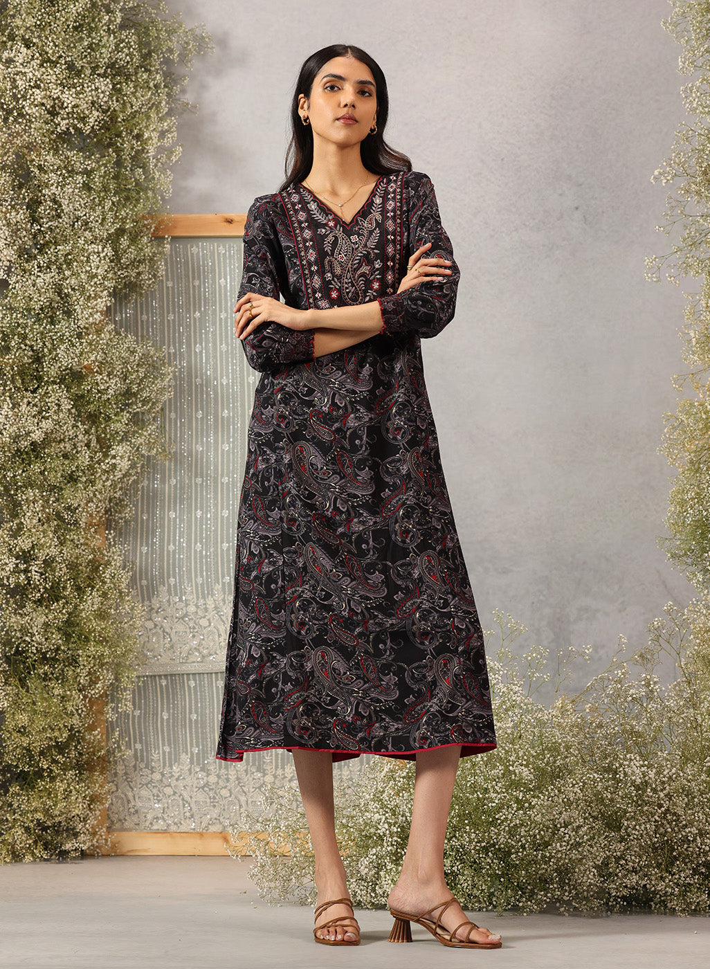 Saraab Salmon Pink Embroidered Viscose Dress for Women