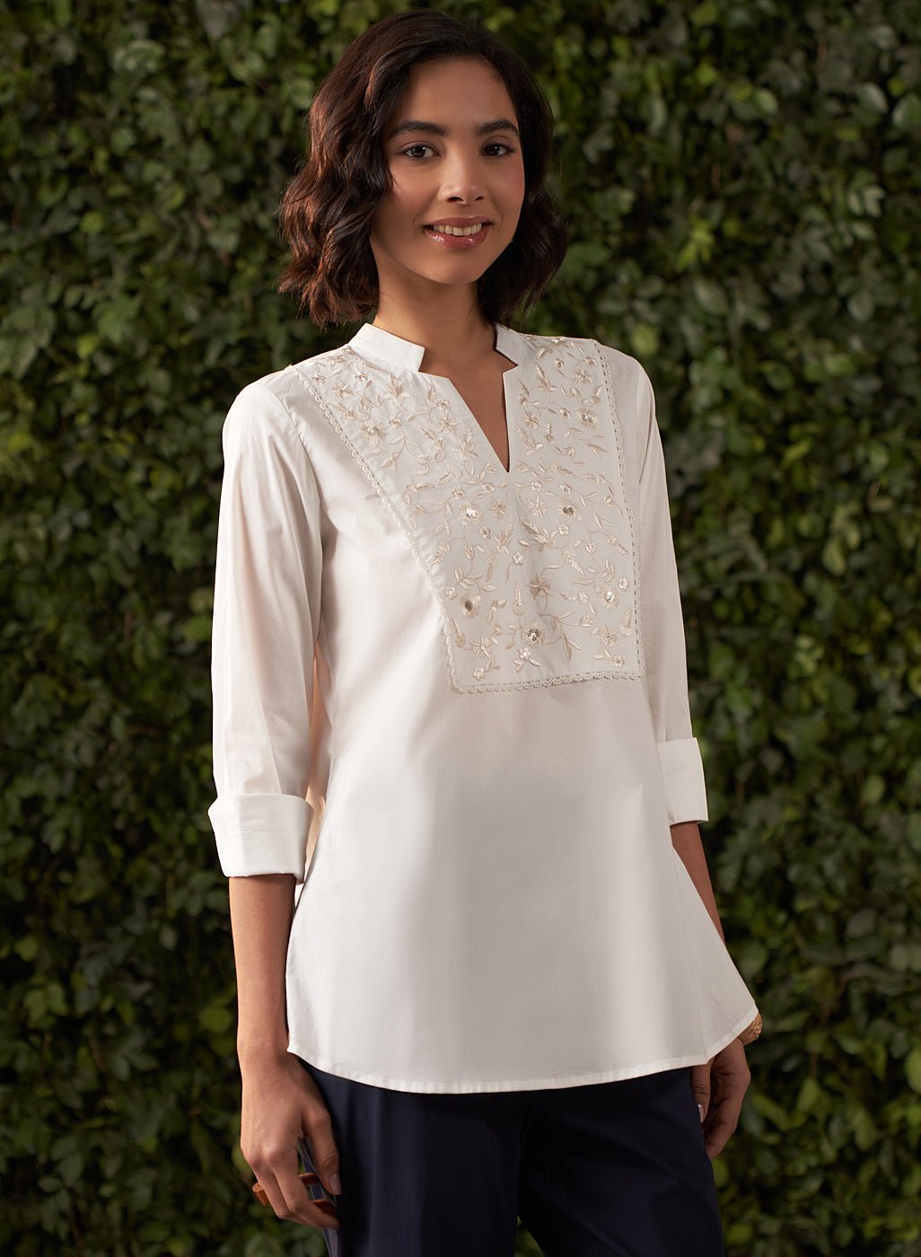 Samayra Pearl Ivory Embroidered Rayon Top for Women