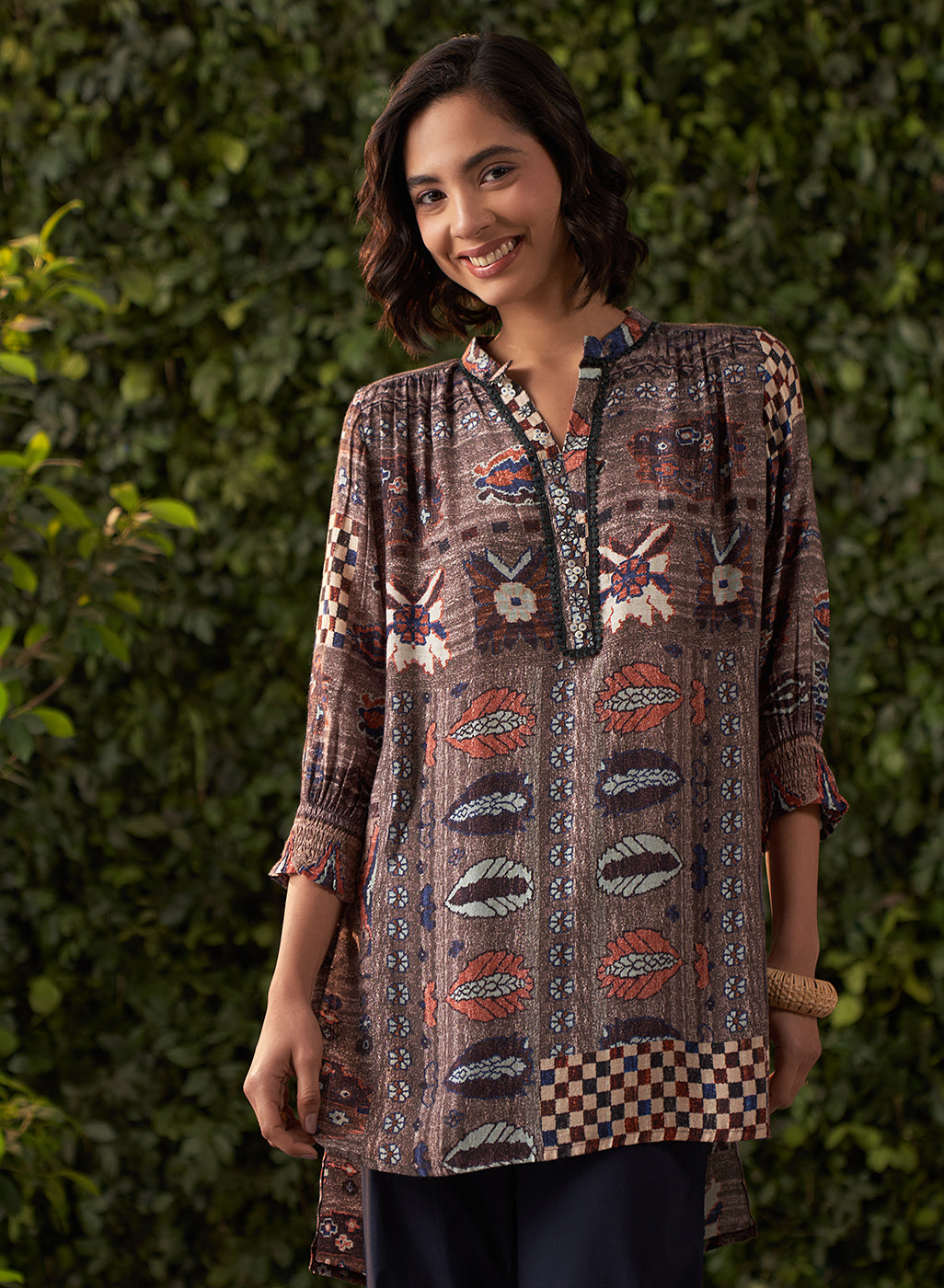 Diana Ash Brown Printed Shantoon Tunic for Women