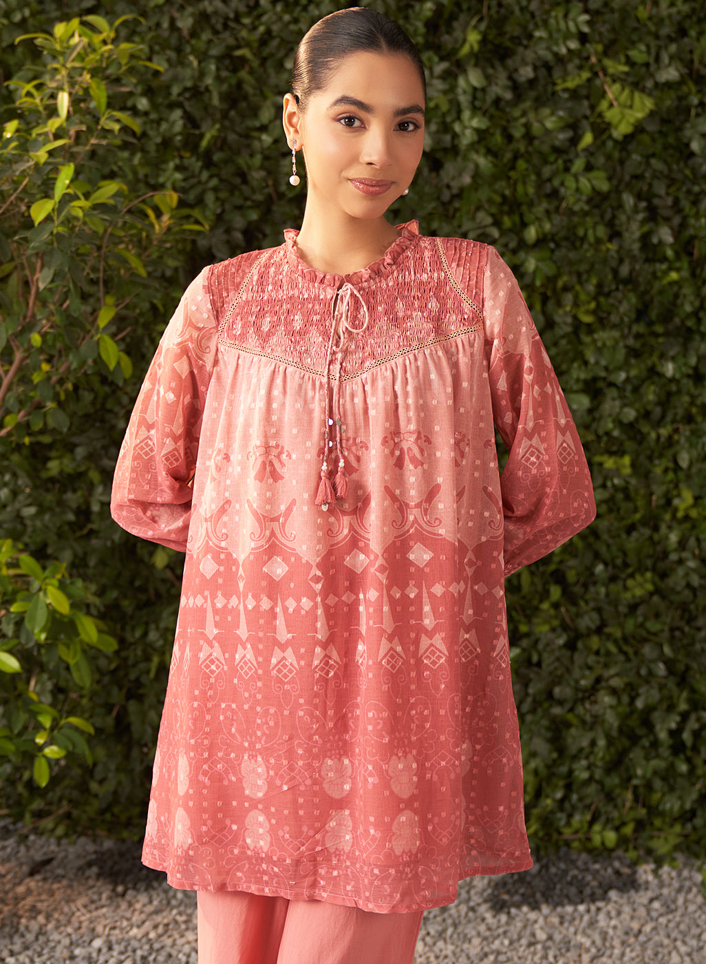 Samira Salmon Pink Printed Chiffon Jacquard A-line Tunic for Women