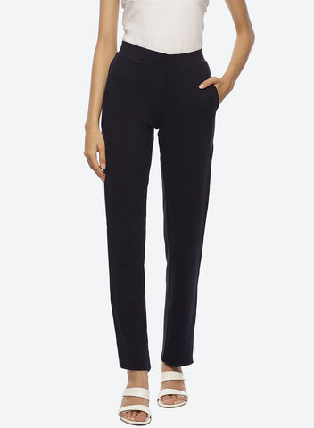 Navy Blue Regular Plain Pants