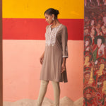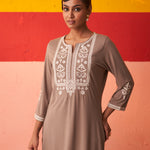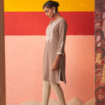 Beige Kurta for Women with Threadwork and Lace Detailing