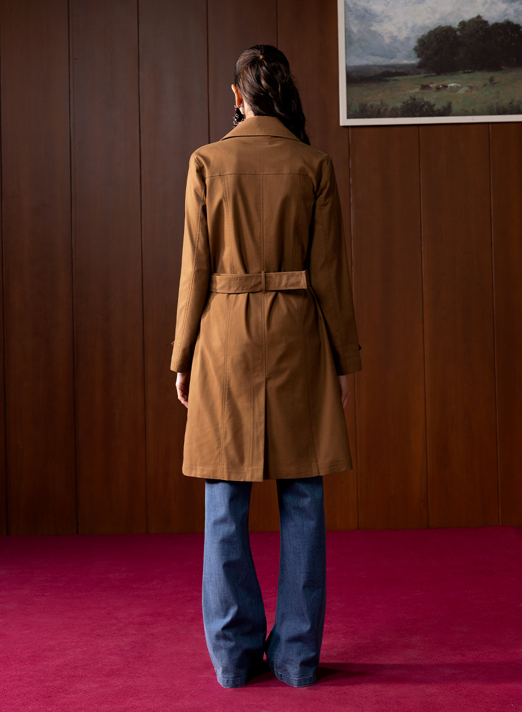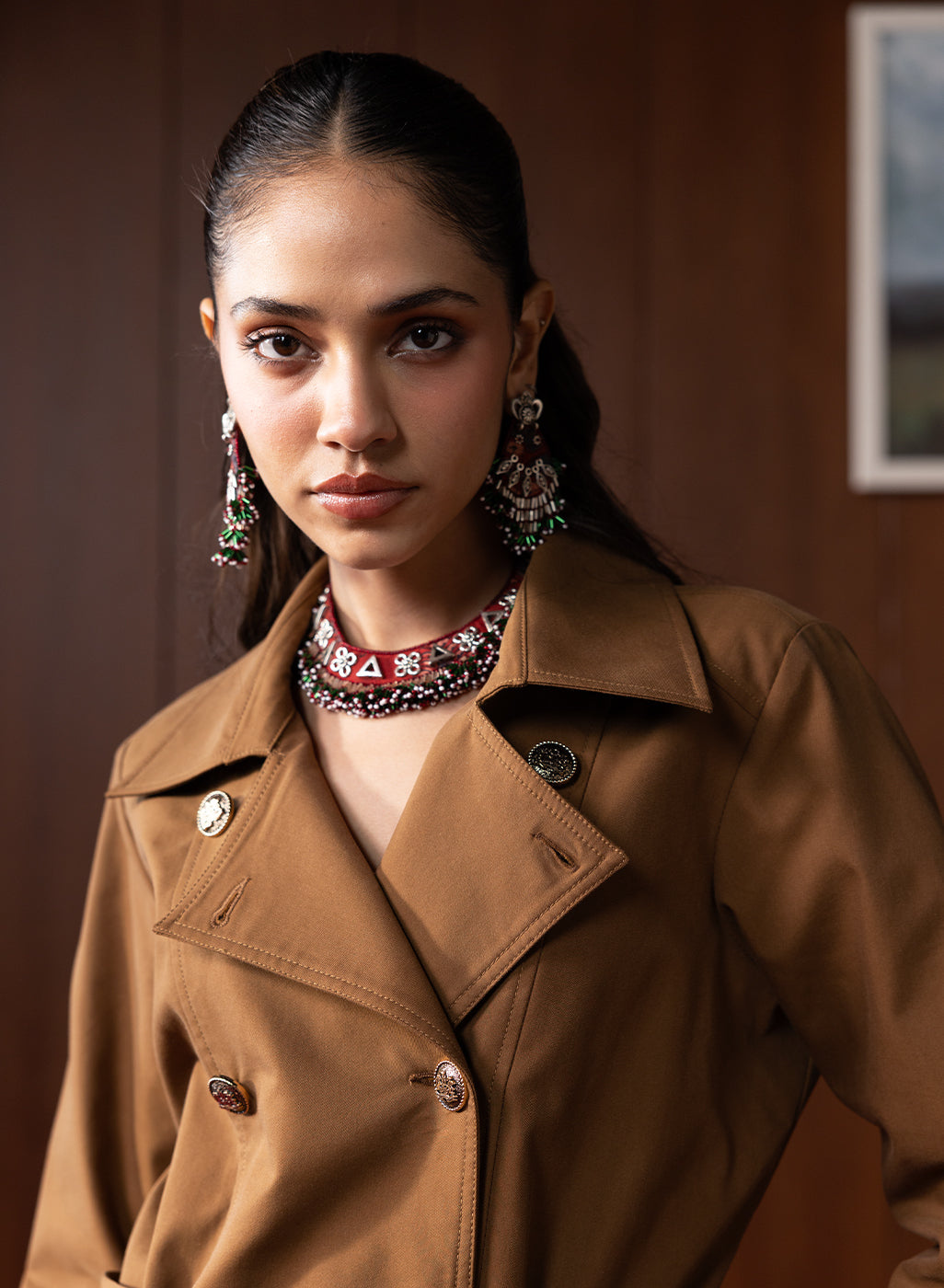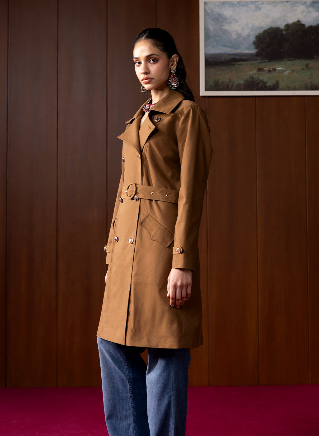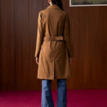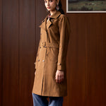 This olive suede coat is the perfect blend of structure and softness. The earthy tone brings a warm, effortless elegance, making it a winter staple you can reach for every day. Designed with an A-line silhouette, notched lapel, and sleek panelled detailing, it drapes beautifully while remaining comfortable and easy to layer.