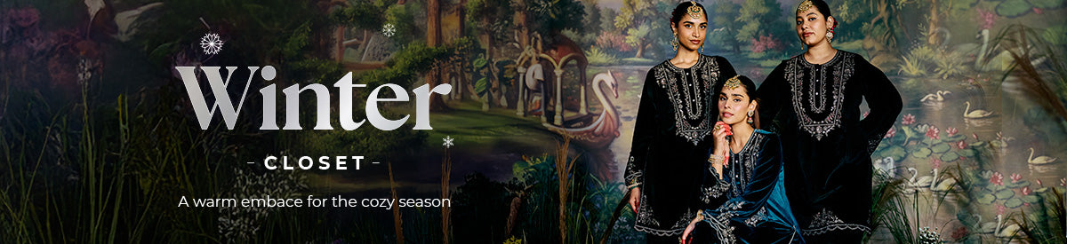 Faha Teal Blue Embroidered Velvet Kurta Set for Women with Dupatta
