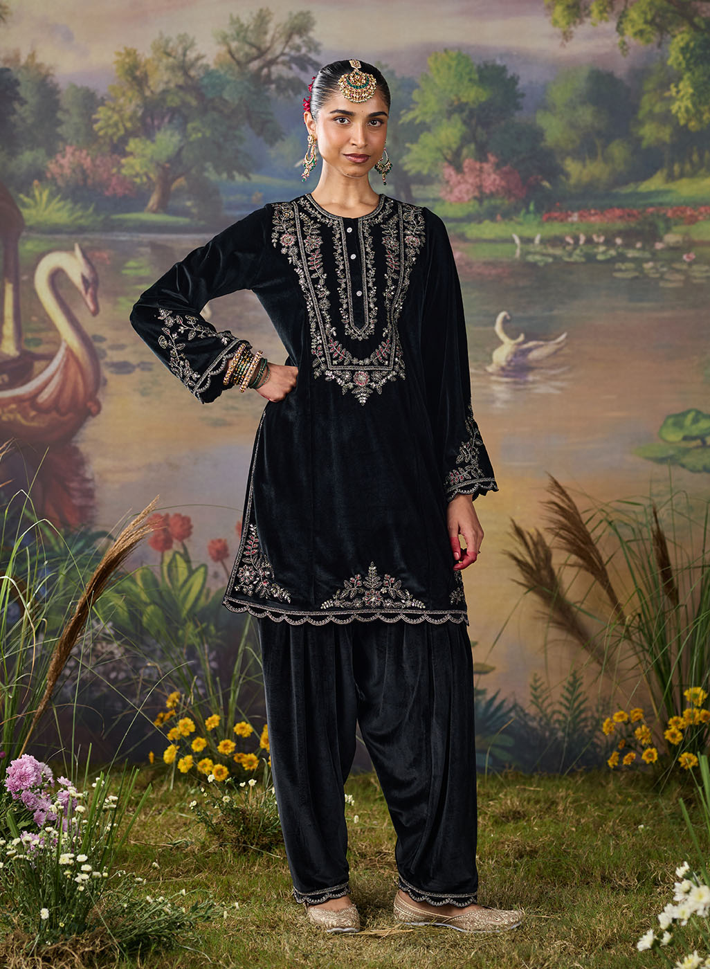 Tavira Black Embroidered Velvet Co-ord Set