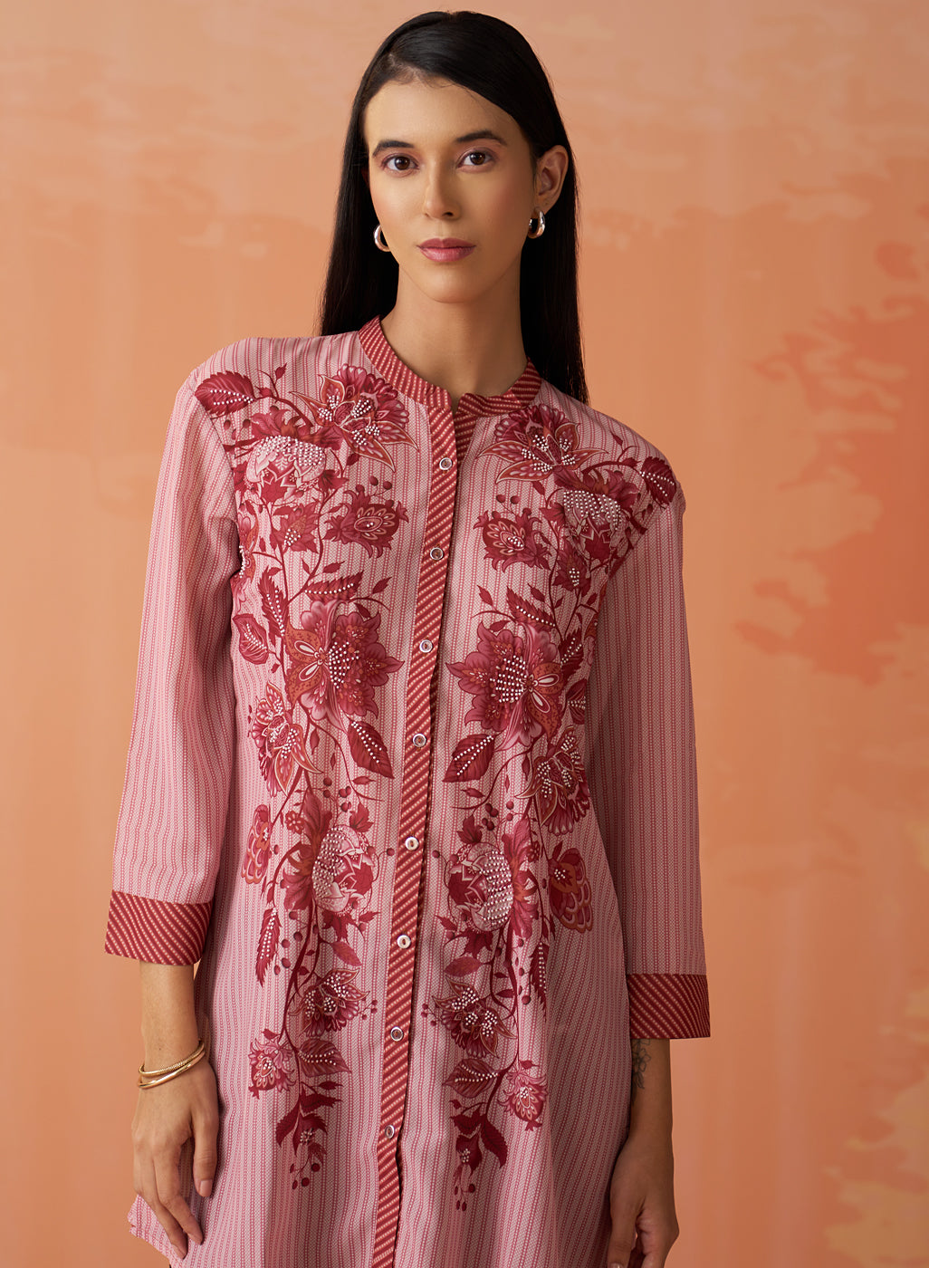 Pink Printed Schiffli Cotton Shirt