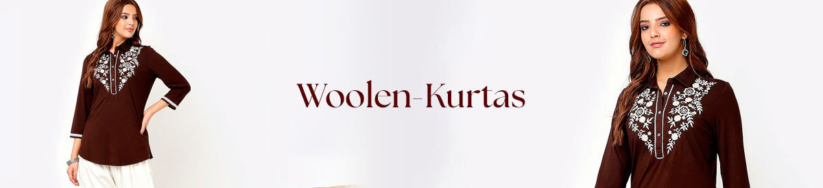 Black Woollen Kurta for Women with Leather Collar and Sequin Work