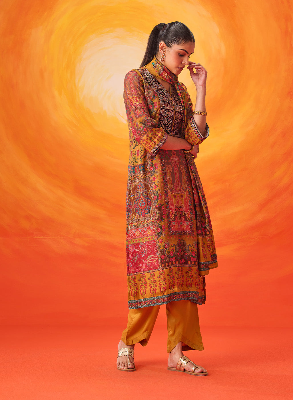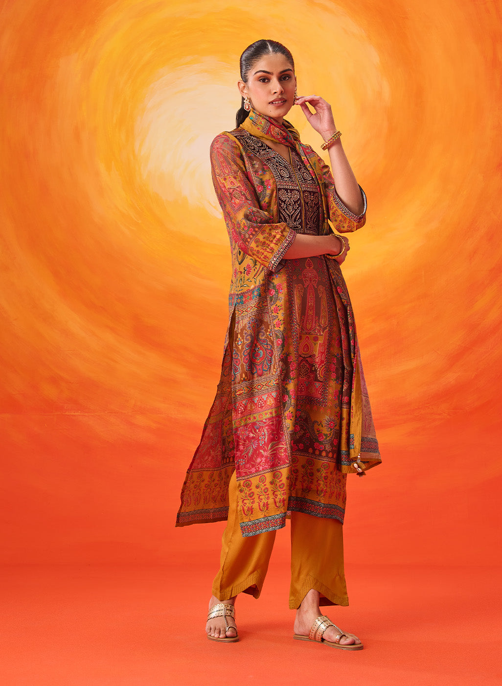 Aarzoo Mustard Printed Suit Set with Dupatta