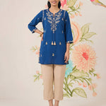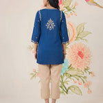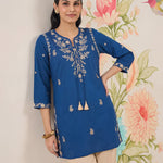 Afiya Blue Cotton Blend Embroidered Kurti