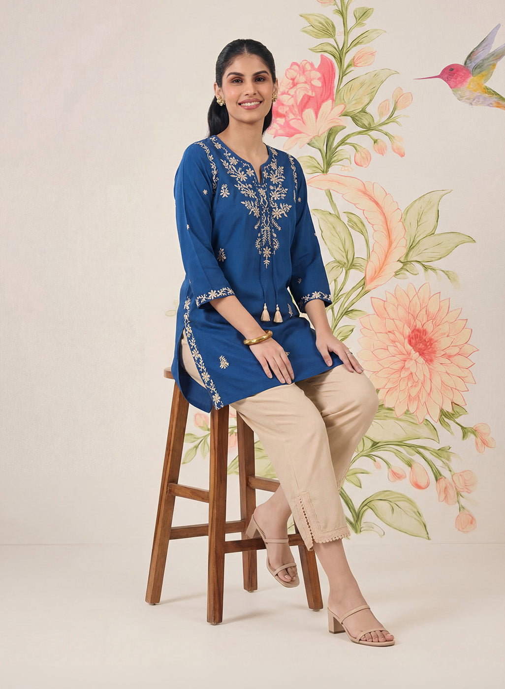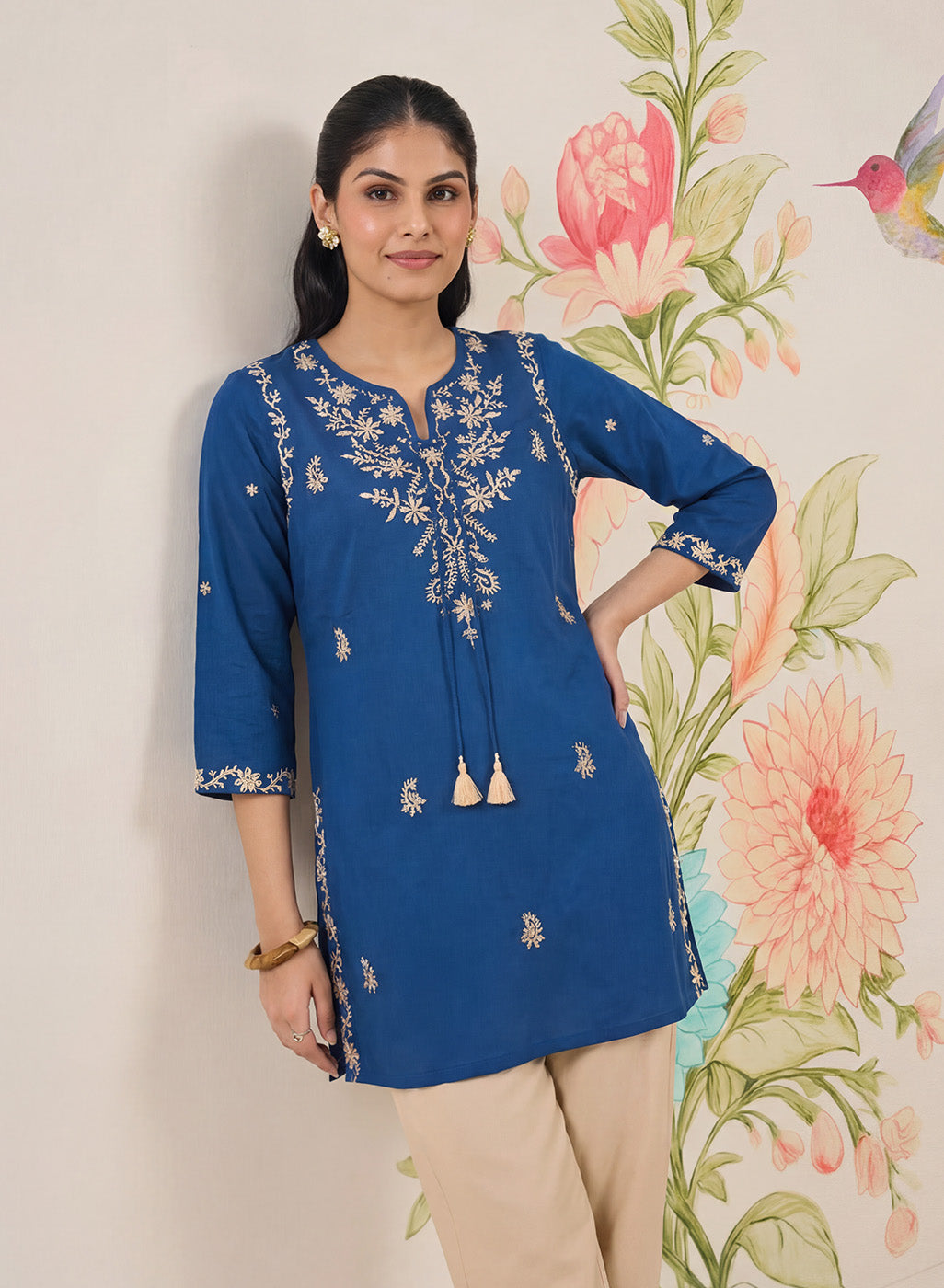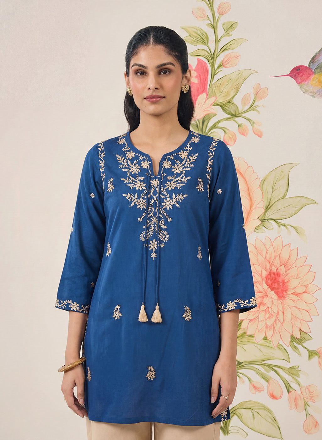 - Straight short kurti with a clean, easy silhouette.