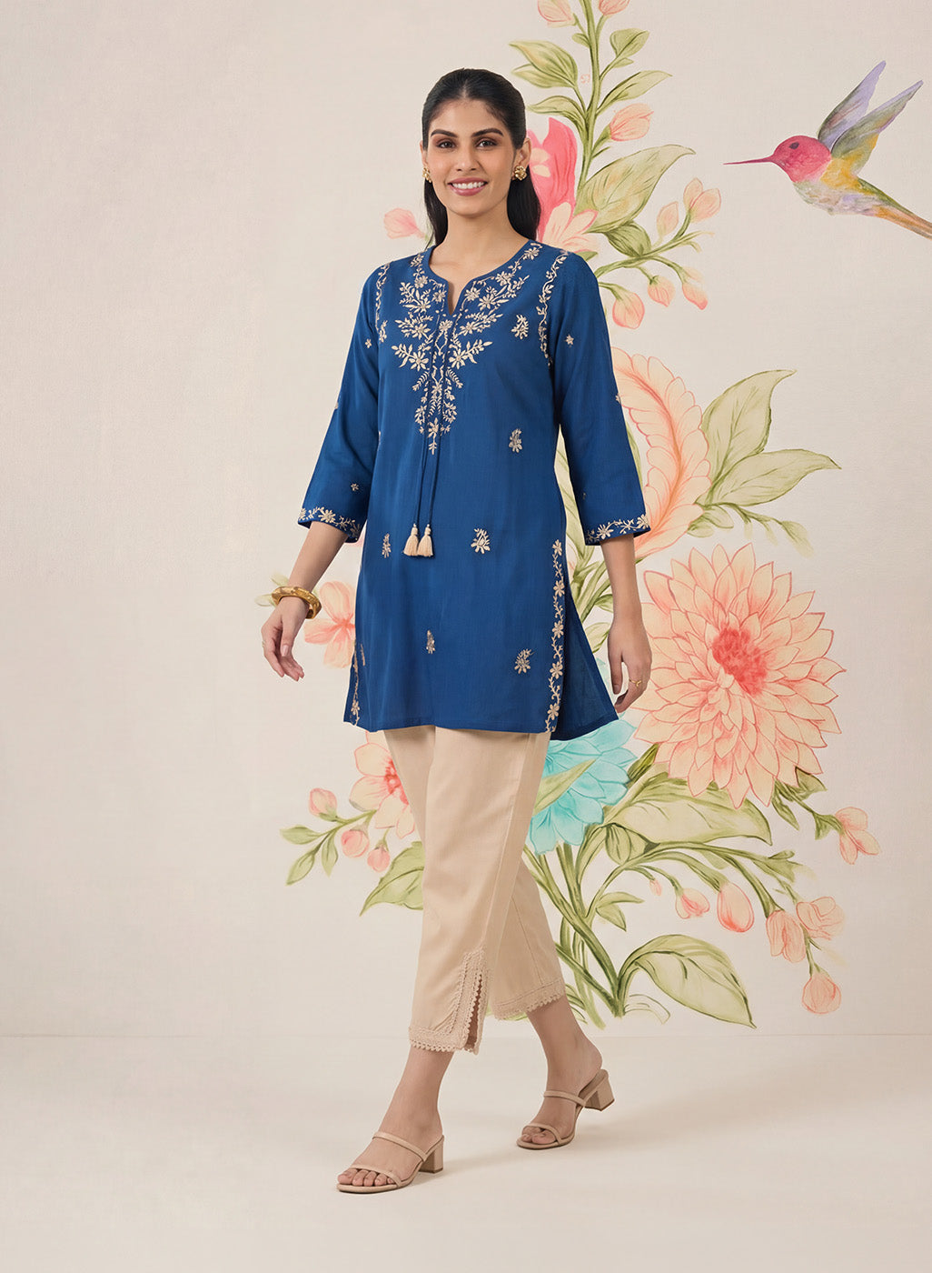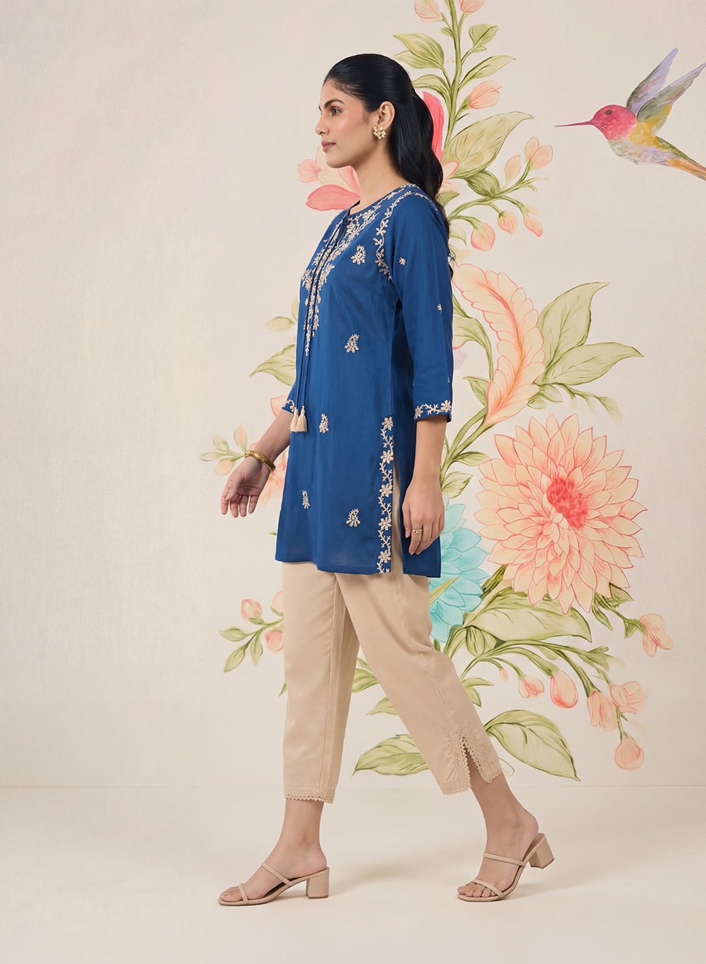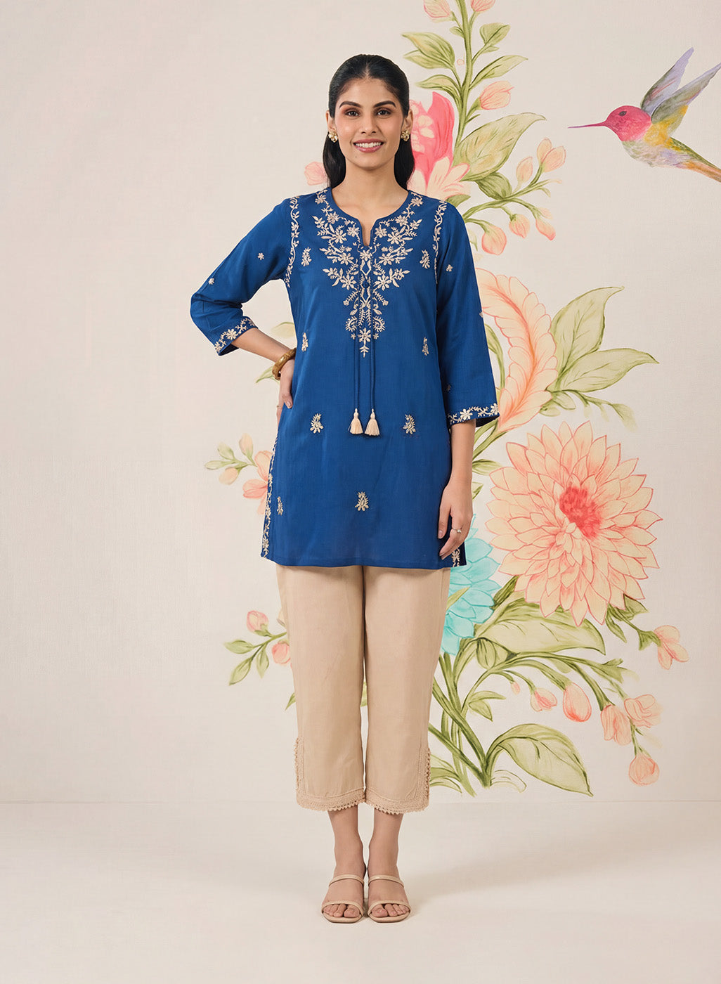 - Straight short kurti with a clean, easy silhouette.