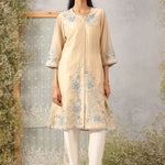 Aks Cream Embroidered Modal Chanderi Tunic for Women