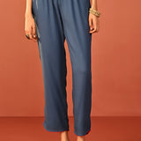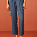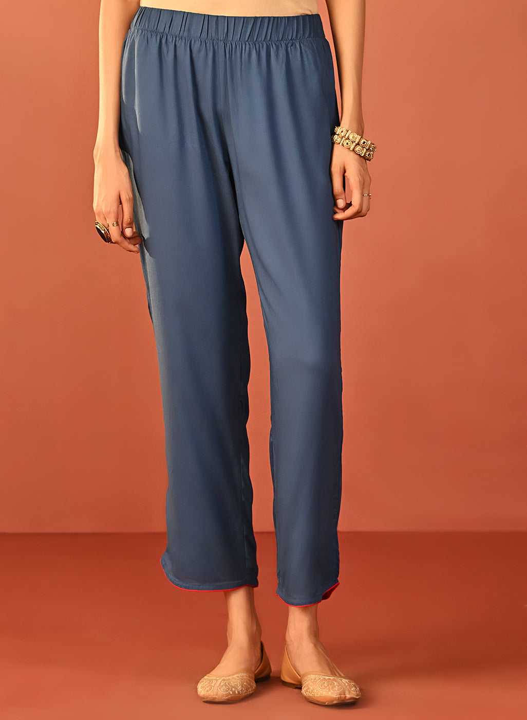 •The straight pants feature a mid-waist elastic waistband for a comfortable fit, practical slit pockets and contrast piping on the hem that echoes the kurta’s decorative details.