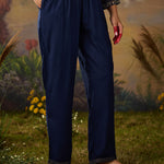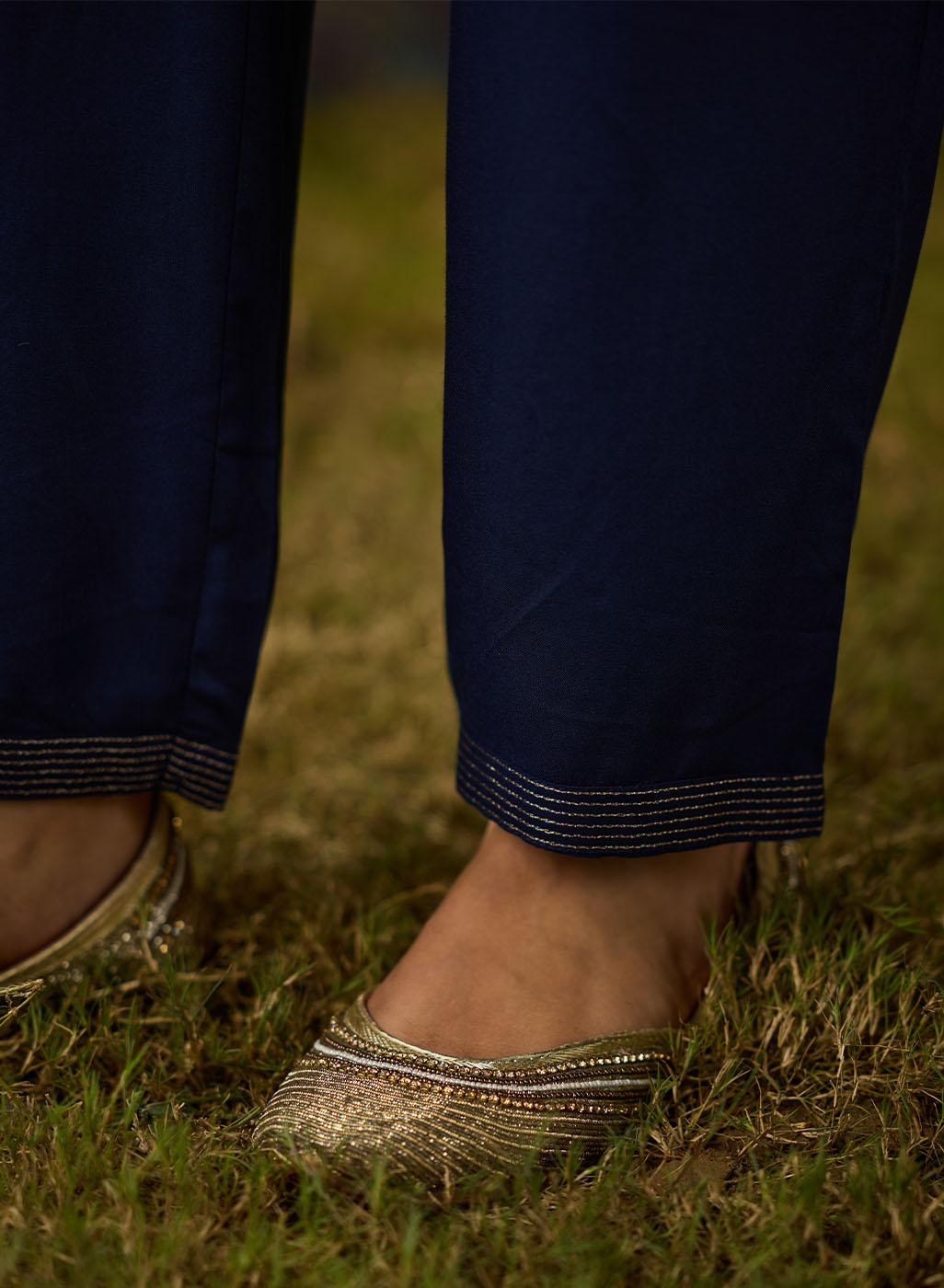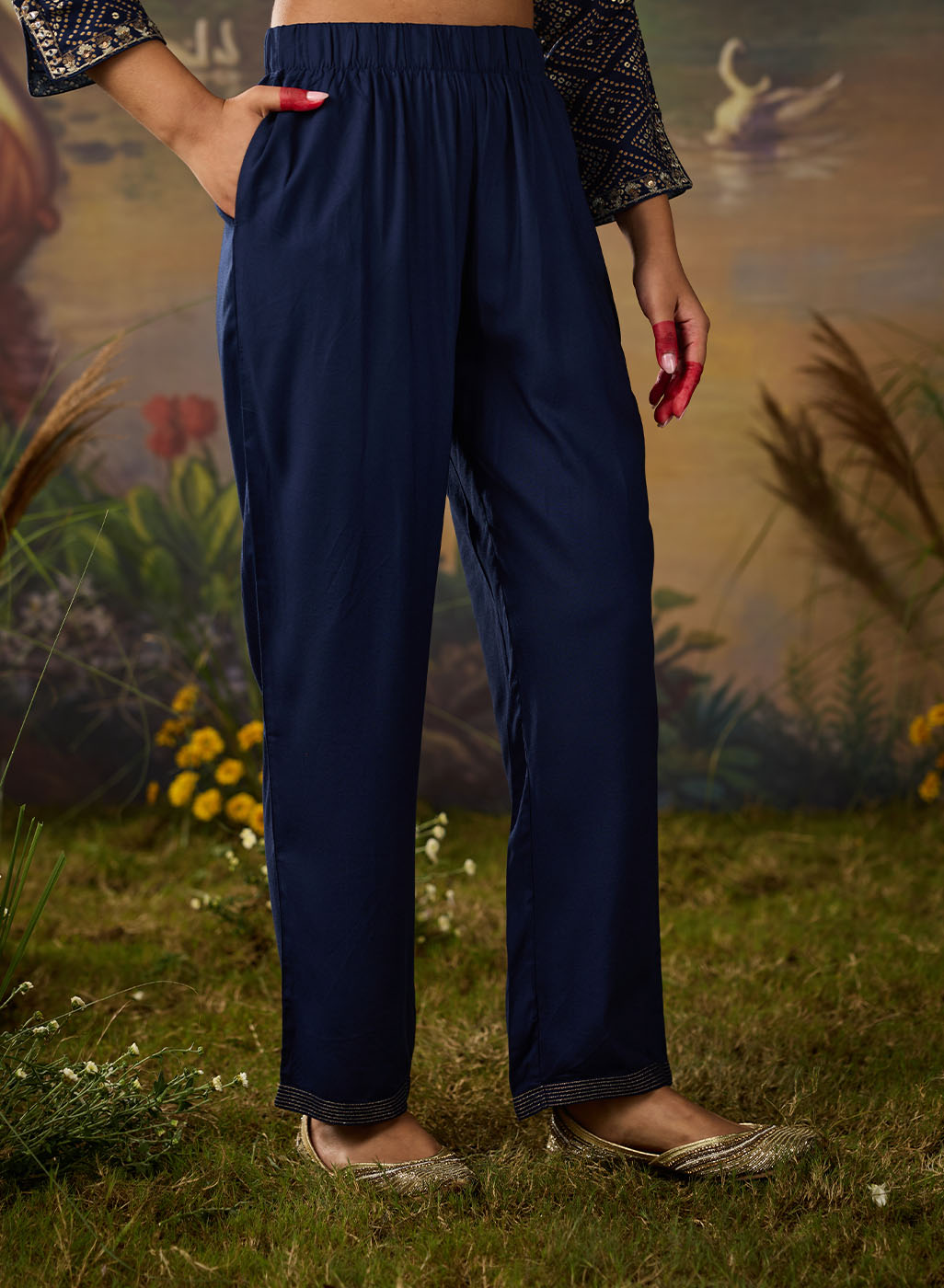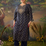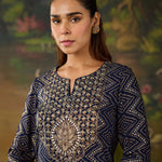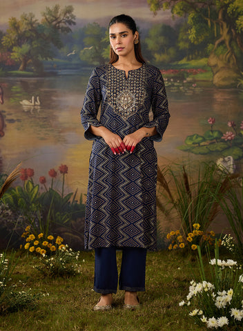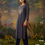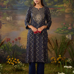 Amaltas Navy Blue Printed Viscose Embellished Straight Long Kurta Set