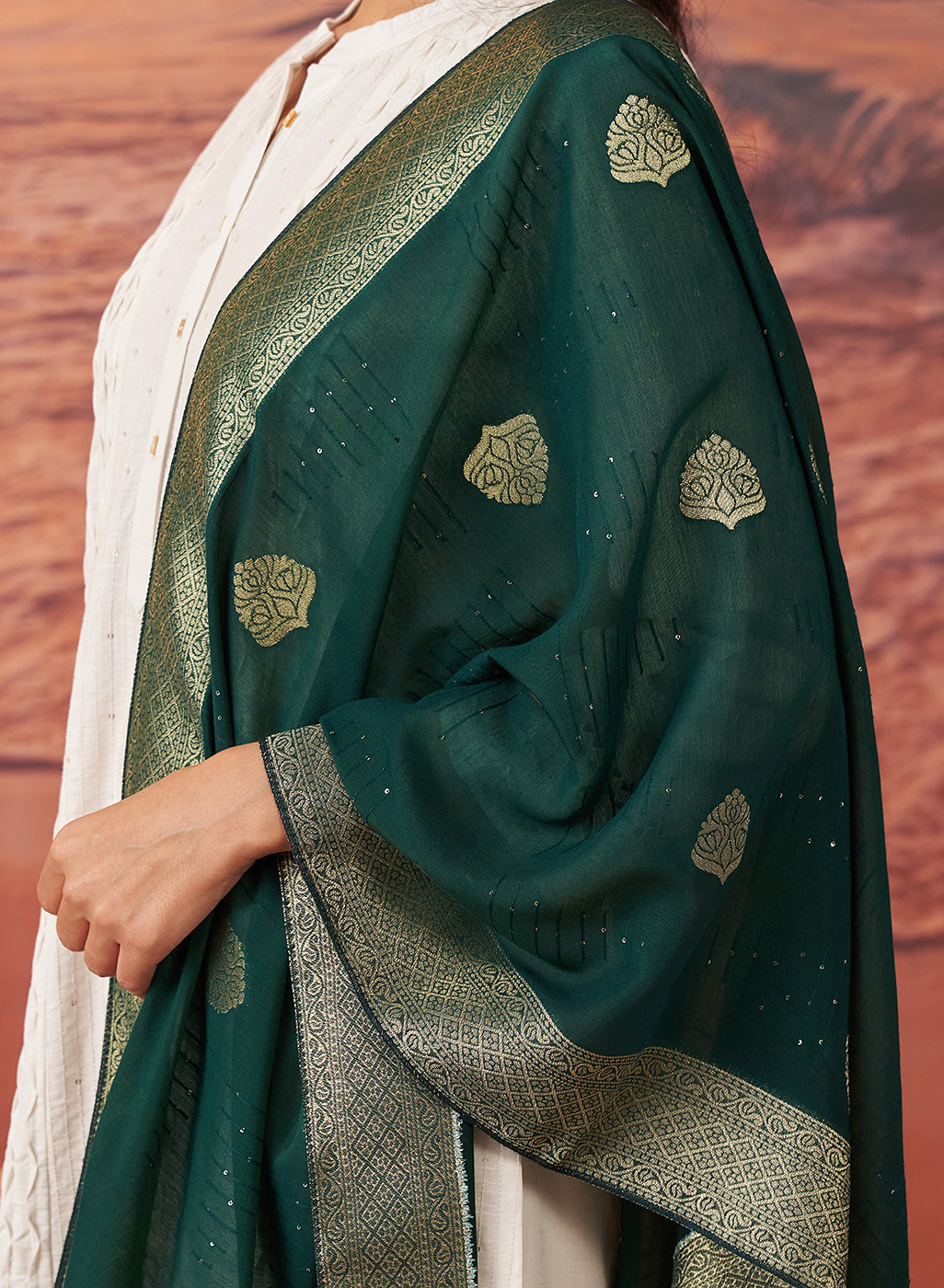 Anavya Emerald Green Chanderi Dupatta for Women