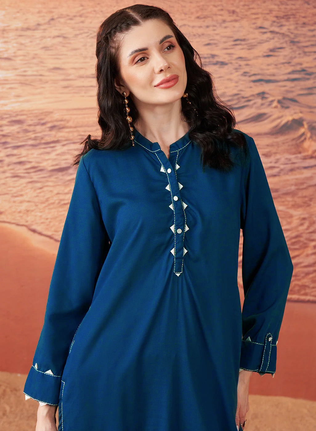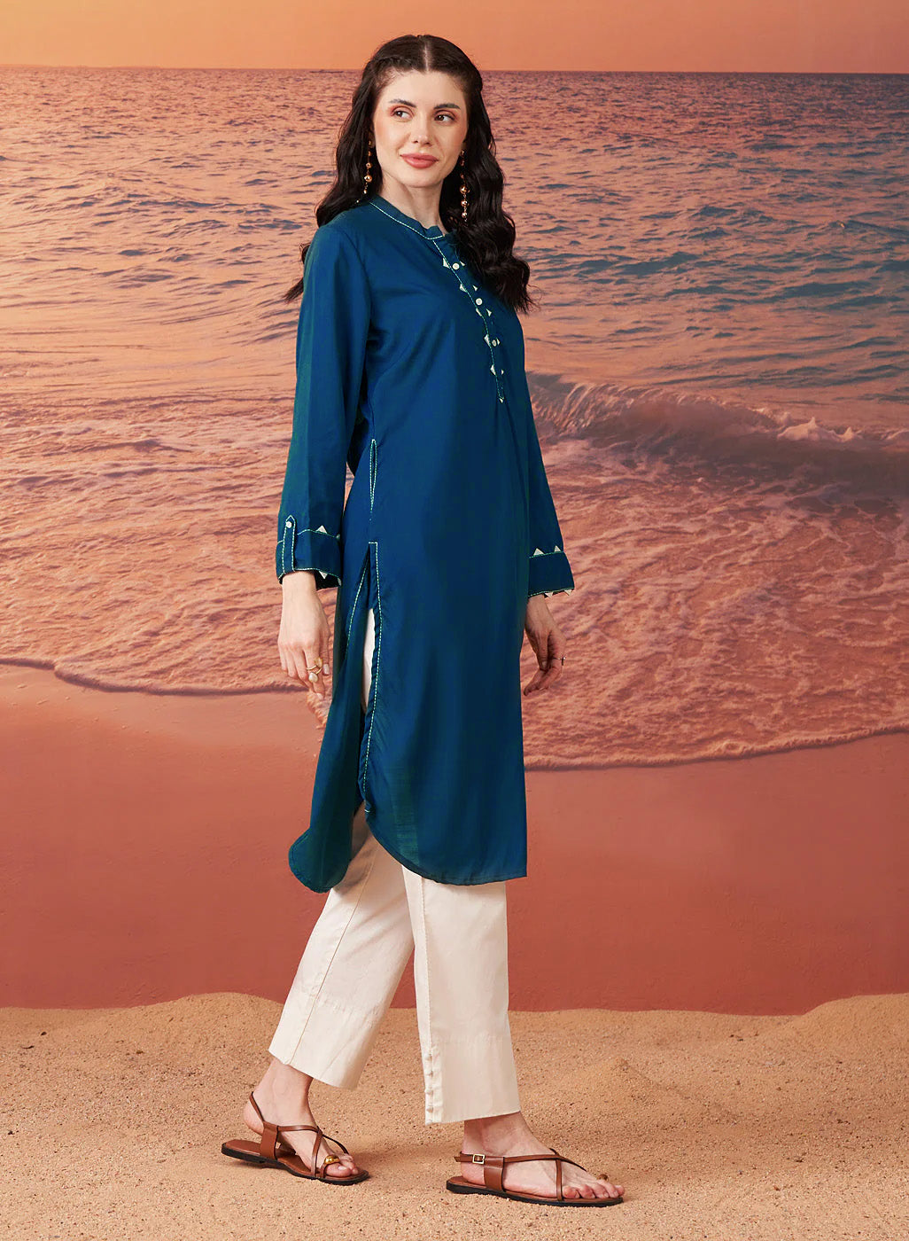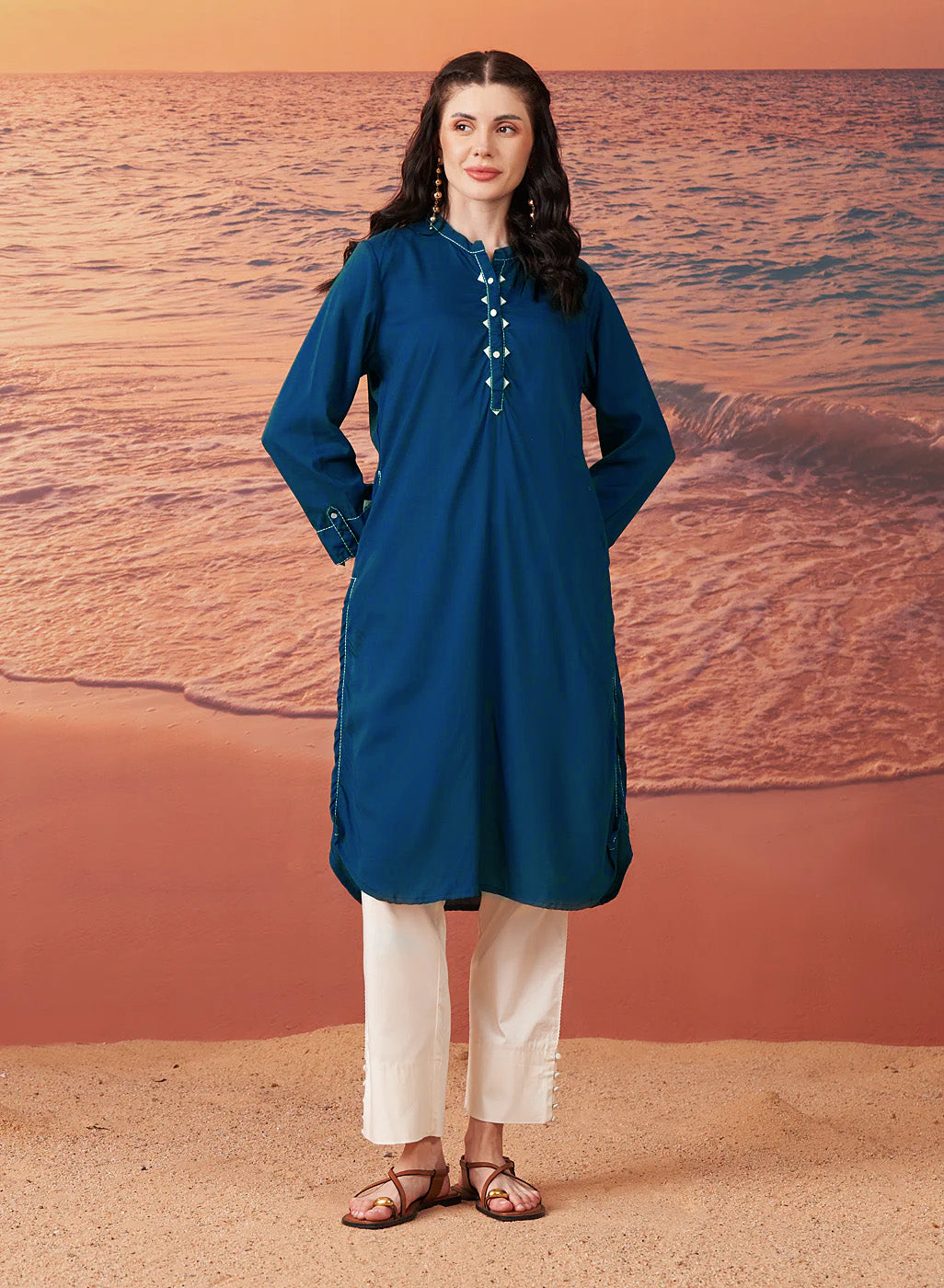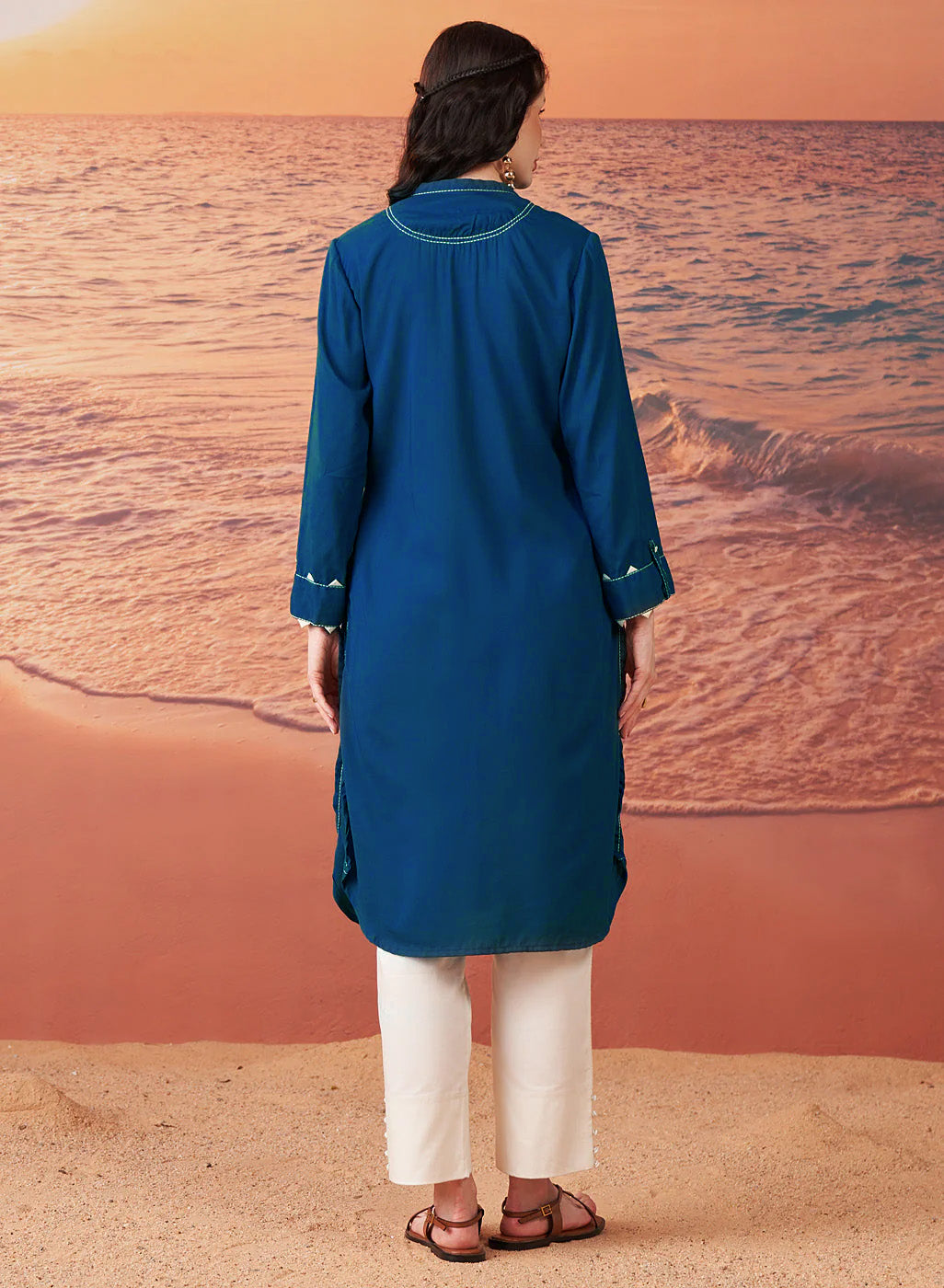 Anisa Navy Monochrome Lyocell Kurta for Women