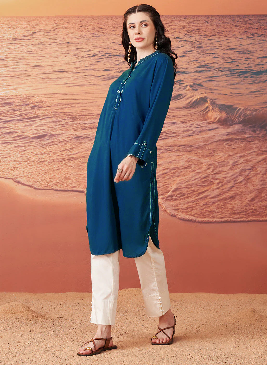 Add a hint of glamour to your everyday wardrobe with our Anisa Monochrome Lyocell Kurta for Women. Handcrafted from soft, lightweight, and breathable fabric, it promises utmost comfort.